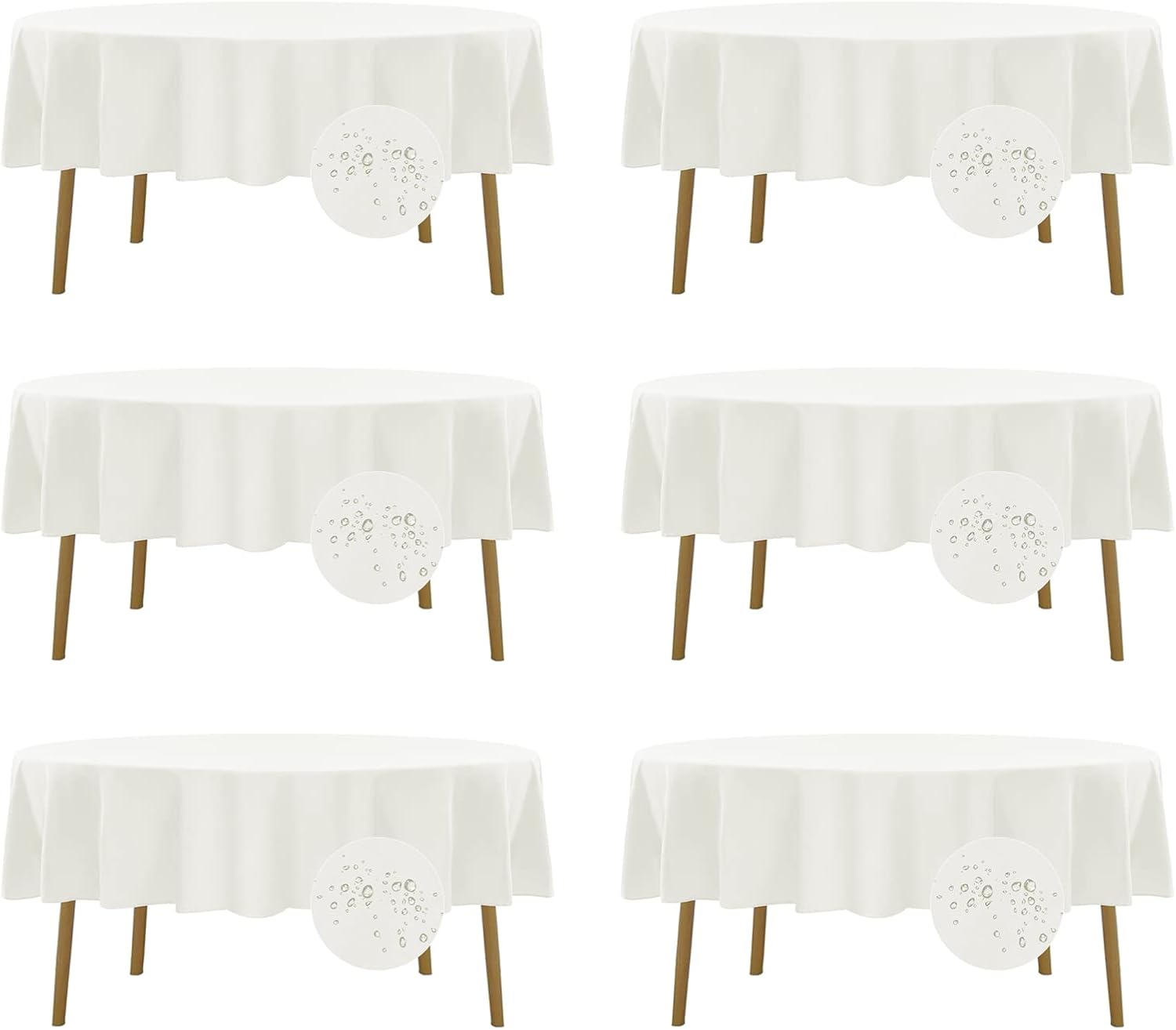 Fokitut 6 Pack Waterproof Round Tablecloth, 90 Inch, Stain Resistant and Wrinkle Polyester Table Cloth, Fabric Table Cover for Kitchen Dining, Wedding, Party, Holiday Dinner-Ivory