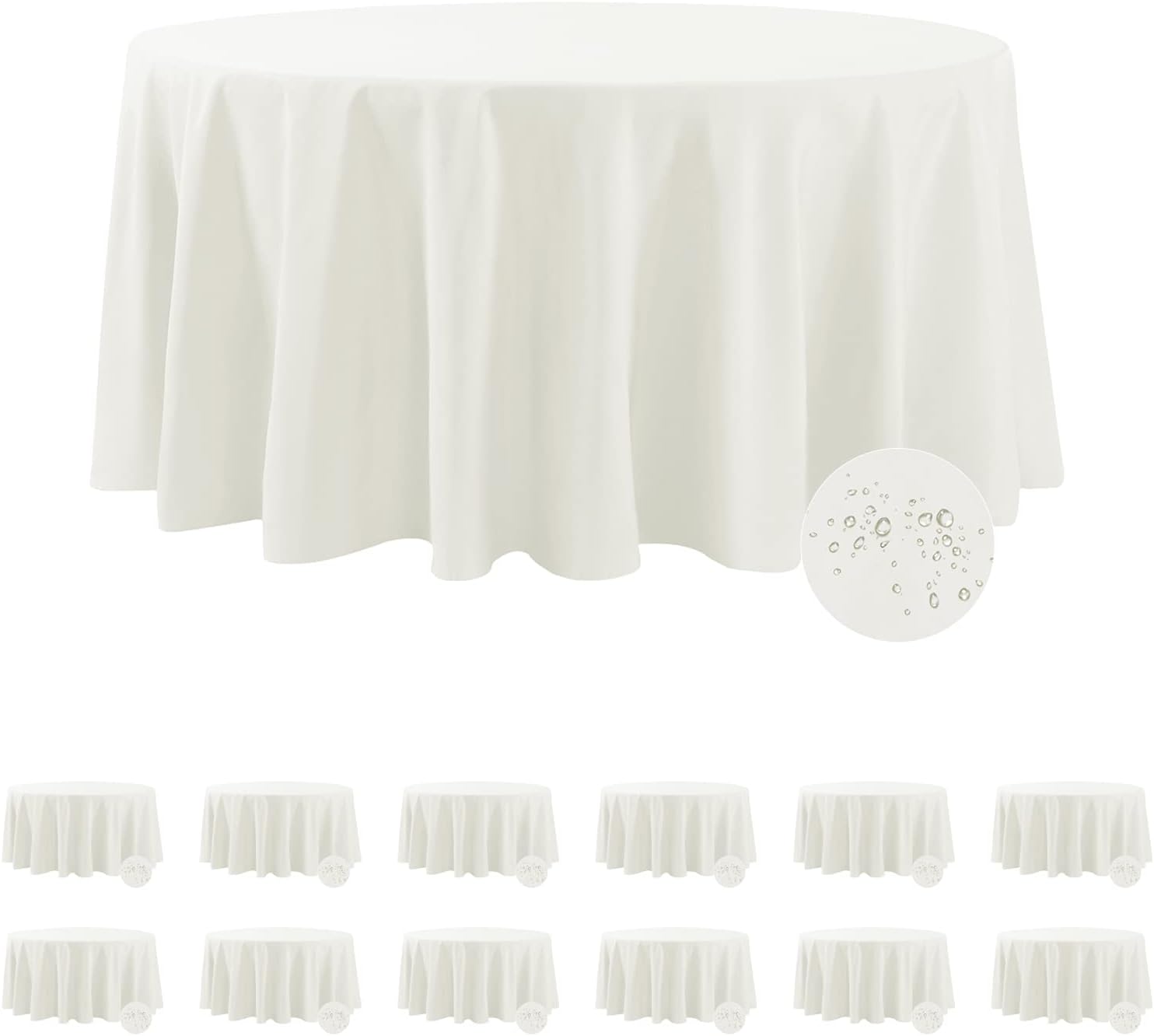 Fokitut 12 Pack Waterproof Round Tablecloth, 108 Inch, Stain Resistant and Wrinkle Polyester Table Cloth, Fabric Table Cover for Kitchen Dining, Wedding, Party, Holiday Dinner-Ivory