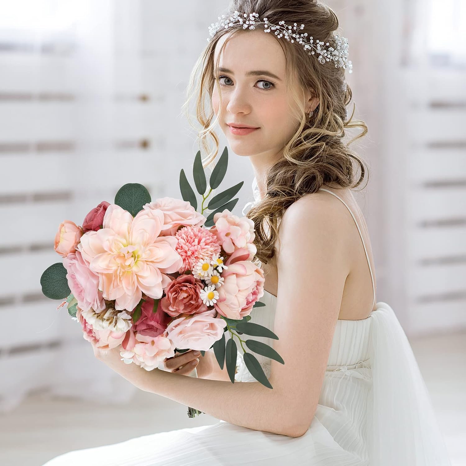 AmyHomie Pink Artificial Flowers Combo Silk Mix Peony Rose Hydrangea Daisy Fake Flowers w/Stem for DIY Wedding Bouquets Centerpieces Arrangements Table Decor Party Bridal Baby Shower Home Decor