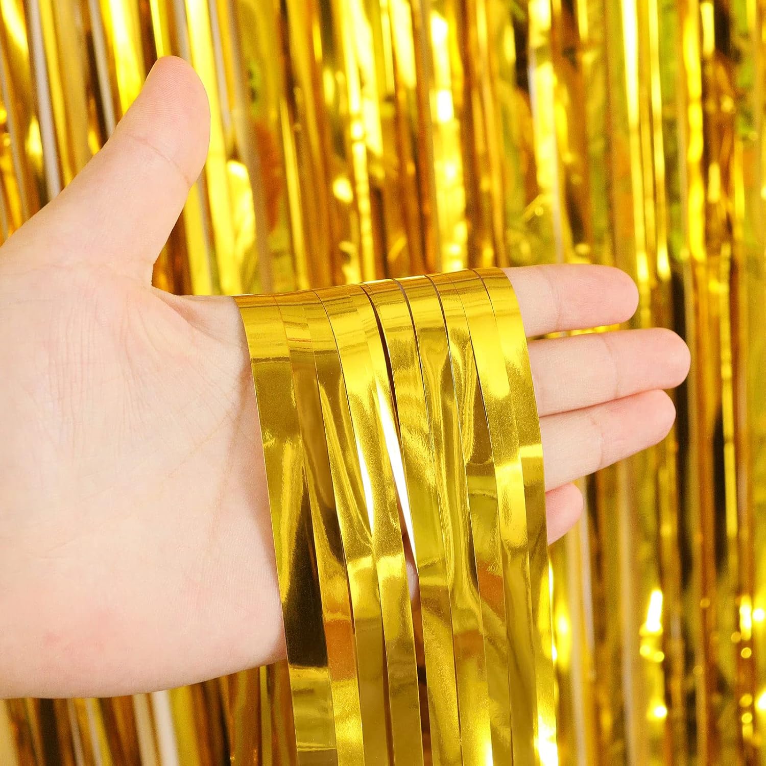 - Sparkling Fringe Curtains: 2 packs foil fringe curtains. Each pack fringe curtains size is 3.28 x 8 ft. DIY party decorations according to your needs
