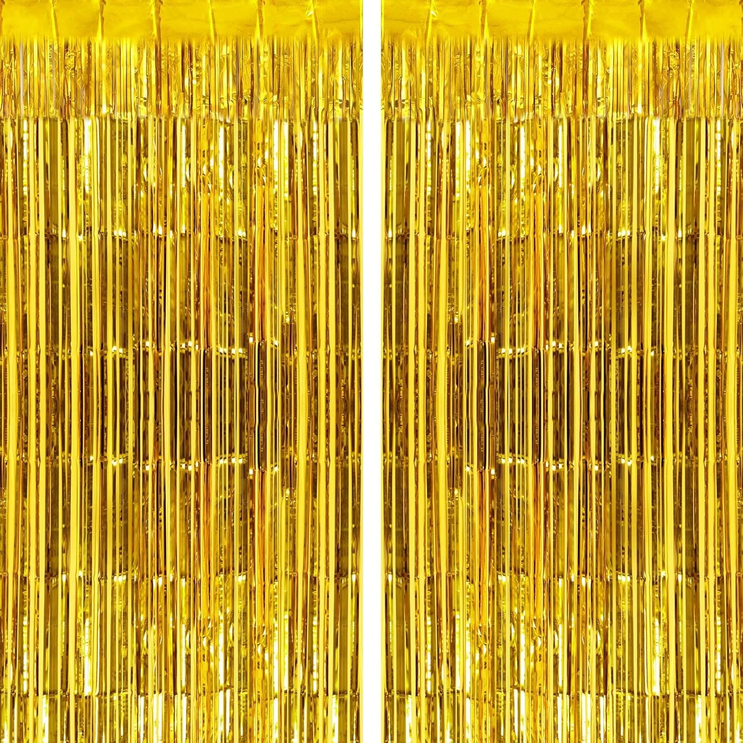 2 Pack Gold Fringe Curtains Foil Shiny Fringe Backdrop Tinsel Door Streamers Foil Curtains for Birthday Wedding Engagement Bridal Shower Celebration Party Decorations Large