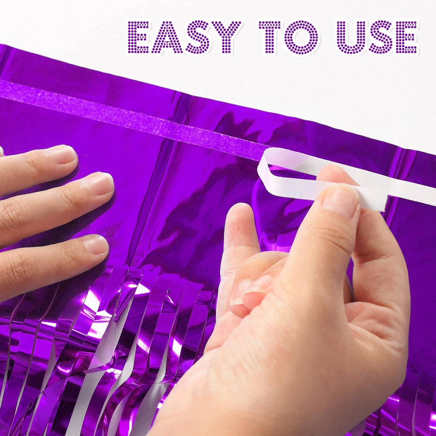 2 Pack Purple Fringe Curtains Foil Shiny Fringe Backdrop Tinsel Door Streamers Foil Curtains for Birthday Wedding Engagement Bridal Shower Celebration Party Decorations Large
