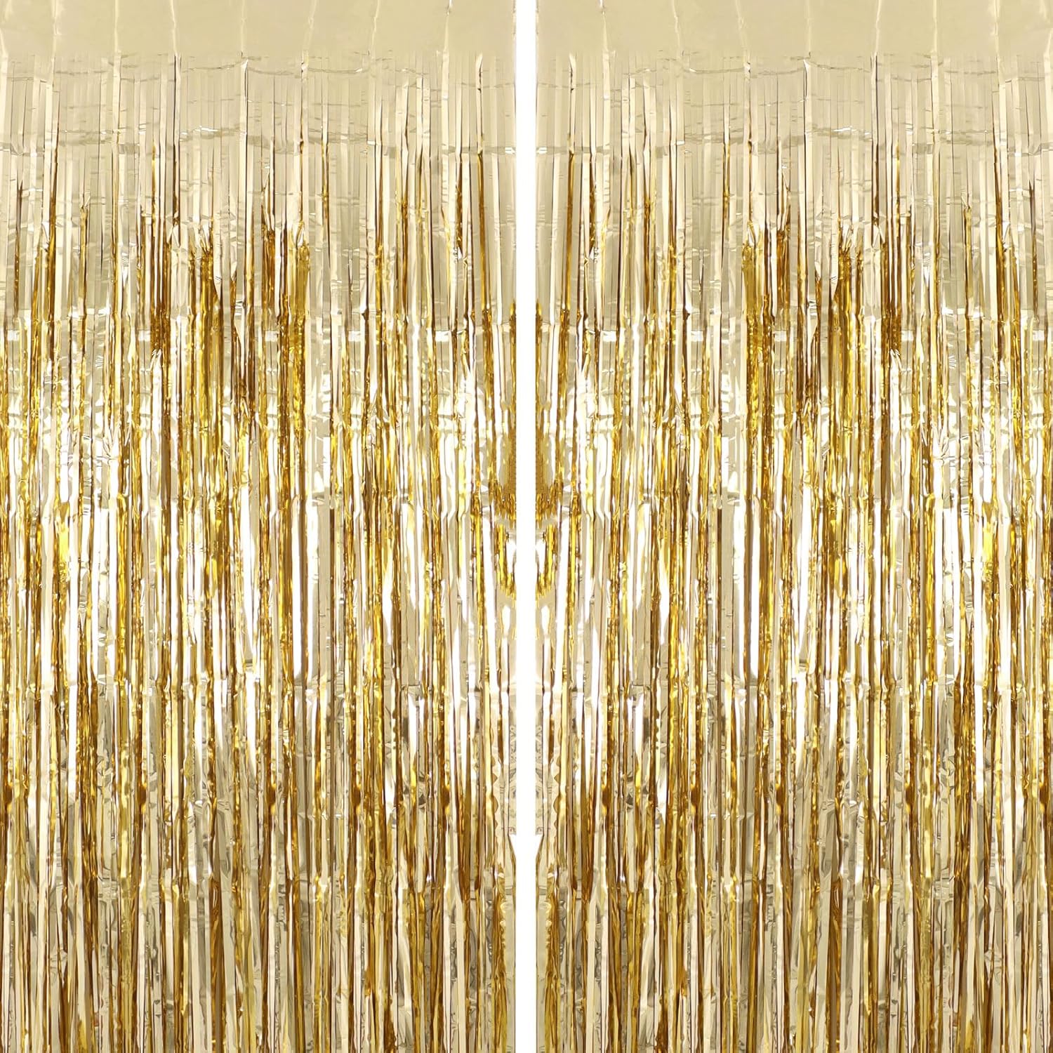 2 Pack Champagne Fringe Curtains Foil Shiny Fringe Backdrop Tinsel Door Streamers Foil Curtains for Birthday Wedding Engagement Bridal Shower Celebration Party Decorations Large
