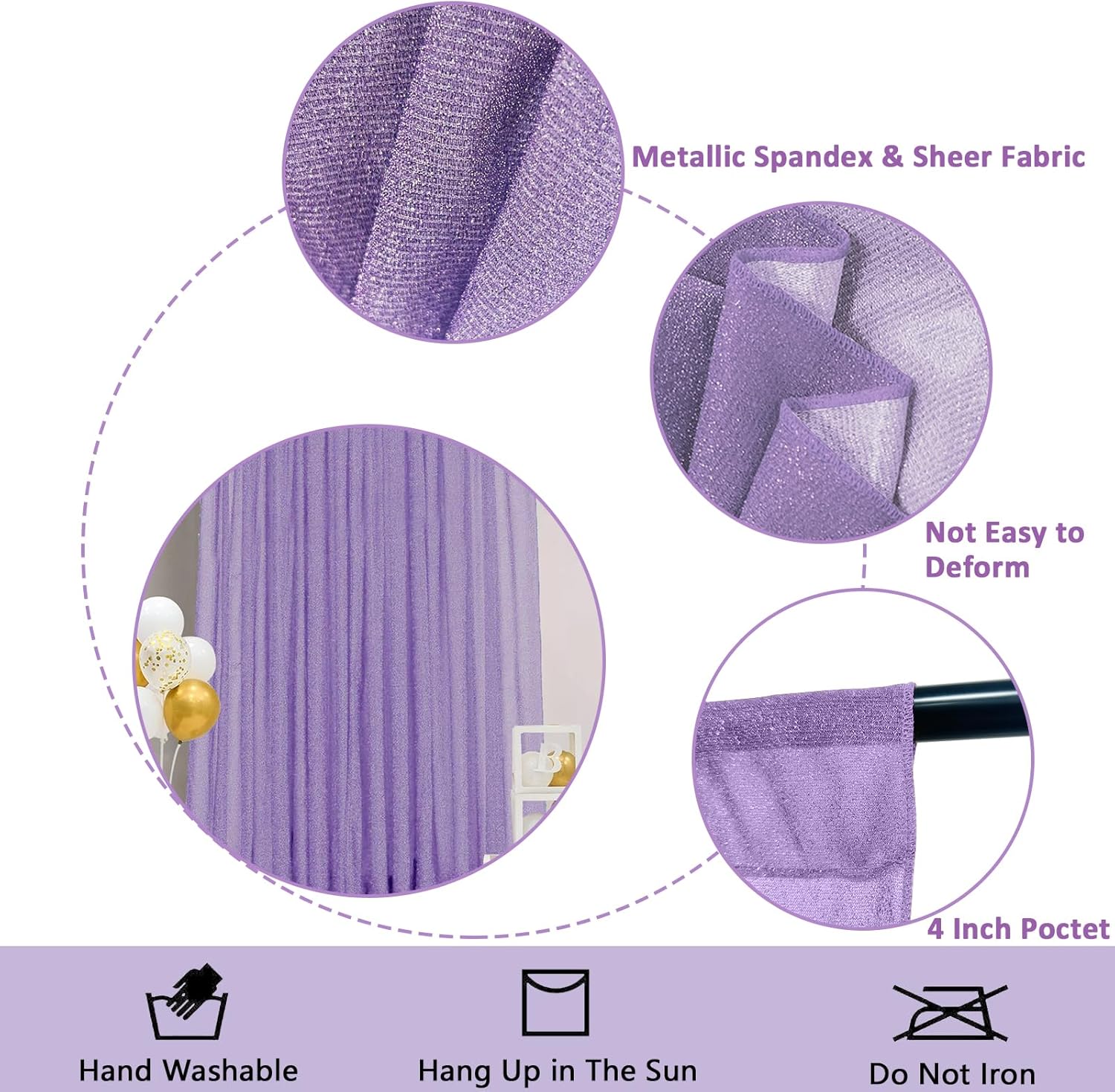 10x10FT Lavender Purple Metallic Sheer Spandex Backdrop, 1 Panel Glitter Photography Background Backdrop, Stretchy Spandex Fabric for Wedding, Party, Baby Shower, Photo Booth Decor