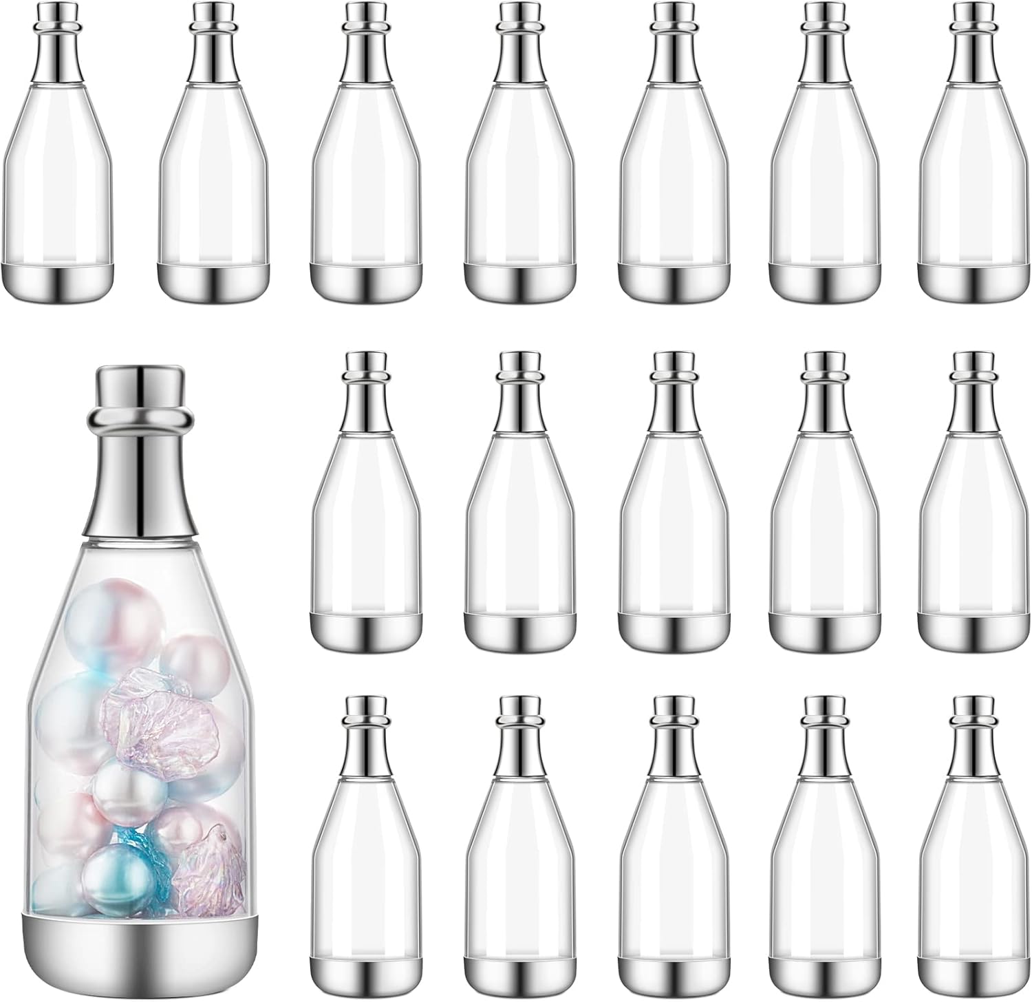 Cunhill 18 Pieces Mini Champagne Bottles Container Bulk Plastic Small Champagne Candy Bottles DIY Favor Mini Candy Jars Wedding Favors for Wedding Bridal Baby Shower Birthday(Clear and Silver)