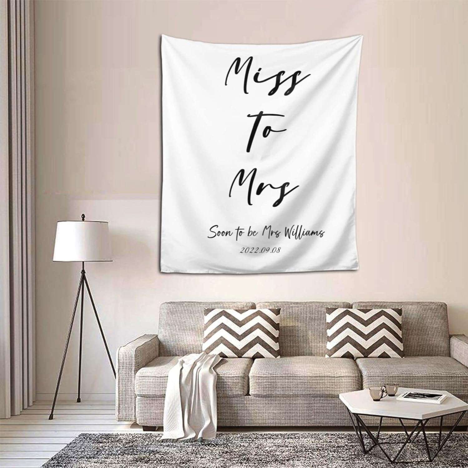 Miss to Mrs Backdrop, Custom Tapestry with Names and Date, Personalized Calligraphy Banner for Bridal Brunch, Shower, Engagement, Bachelorette Party - Reception Backdrop Future