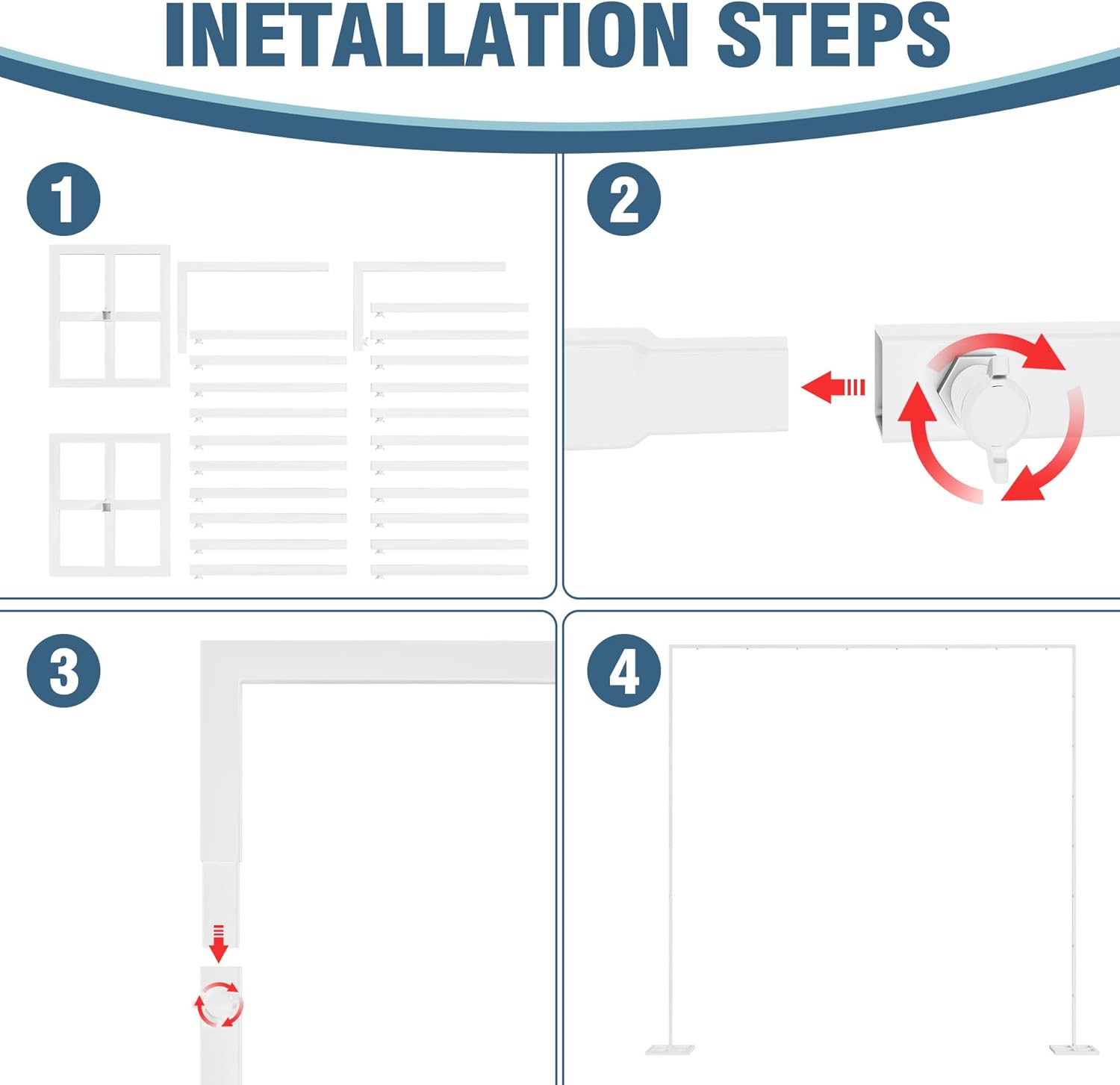 - 【Package Includes】Heavy duty white metal backdrop stand contains L-shaped tube, L-shaped tube with a screw, Short straight tube and 2pcs Rectangular base. Drape not included. These shiny photo booth square arch backdrop stand with unmatchable class and elegance will add more color and atmosphere of festivity to your party.