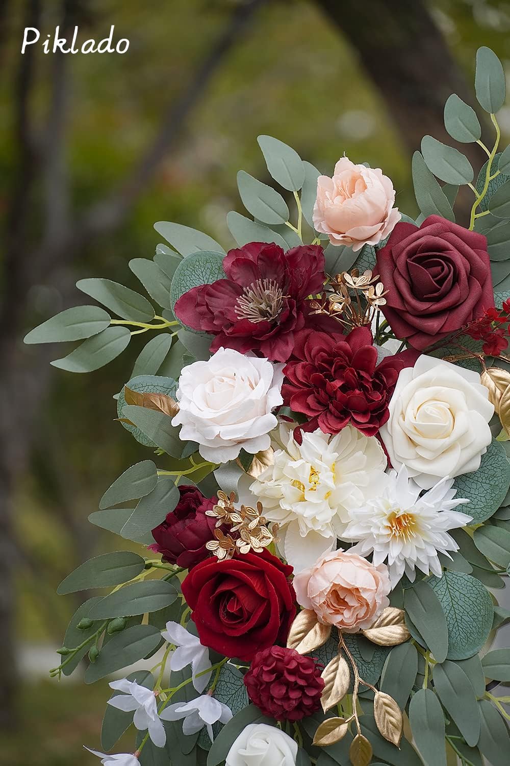 - ☘Material: This wedding flowers for arch is made of silk cloth and foam artificial flowers. They never wilt and look not only beautiful but very lifelike. Designed with a variety of elements for a rich sense of craftsmanship and design, perfect for your wedding arch decoration and welcome sign decoration.