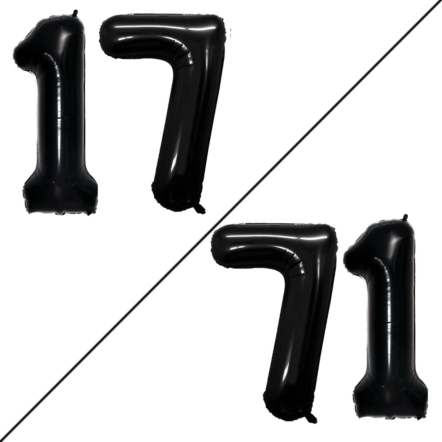 GOER Number 17 Balloons for 17th Birthday Sweet 17 Party Decorations,42 Inch Jumbo Foil Helium 71 Balloons for 71st Birthday Party Decoration (Black)