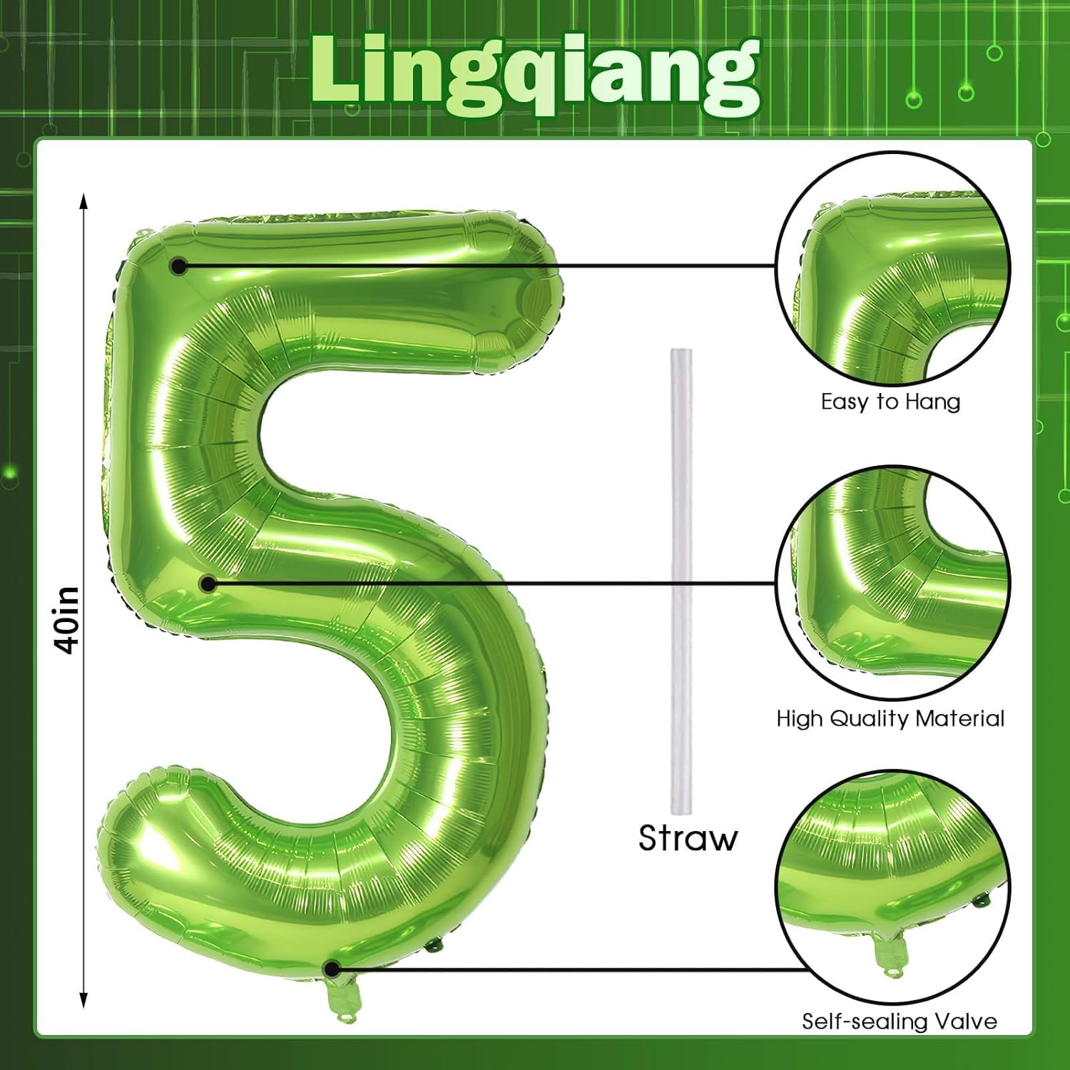 - π Green Number 5 Balloon π - You will get 1pc 40 inch mylar foil number 5 balloon and 1pc straw. Perfect for 5th 15th 25th 50th 45th birthday or anniversary party decorations supplies.