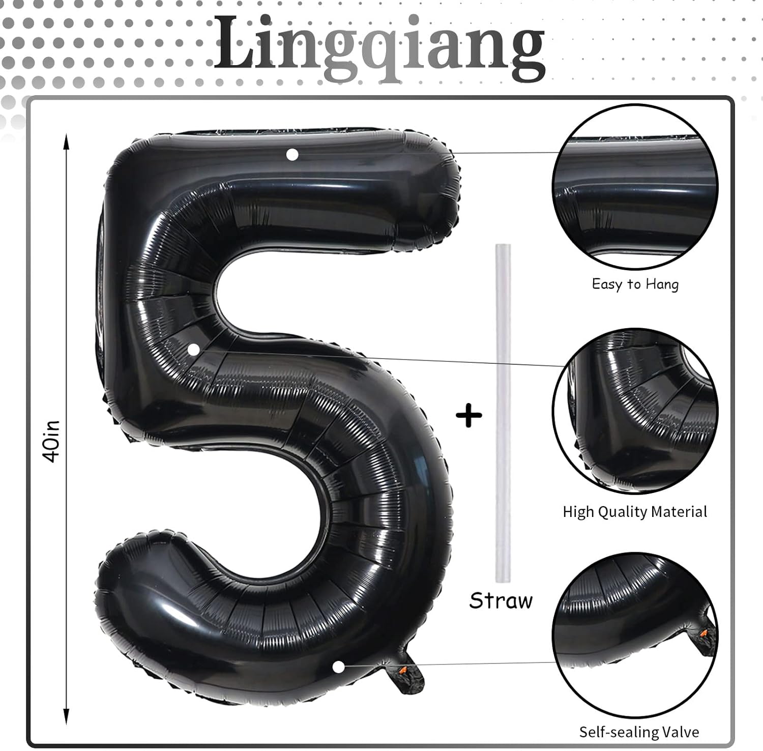 - π Black Number 5 Balloon π - You will get 1pc 40 inch mylar foil number 5 balloon and 1pc straw. Perfect for 5th 15th 25th 50th 45th birthday or anniversary party decorations supplies.
