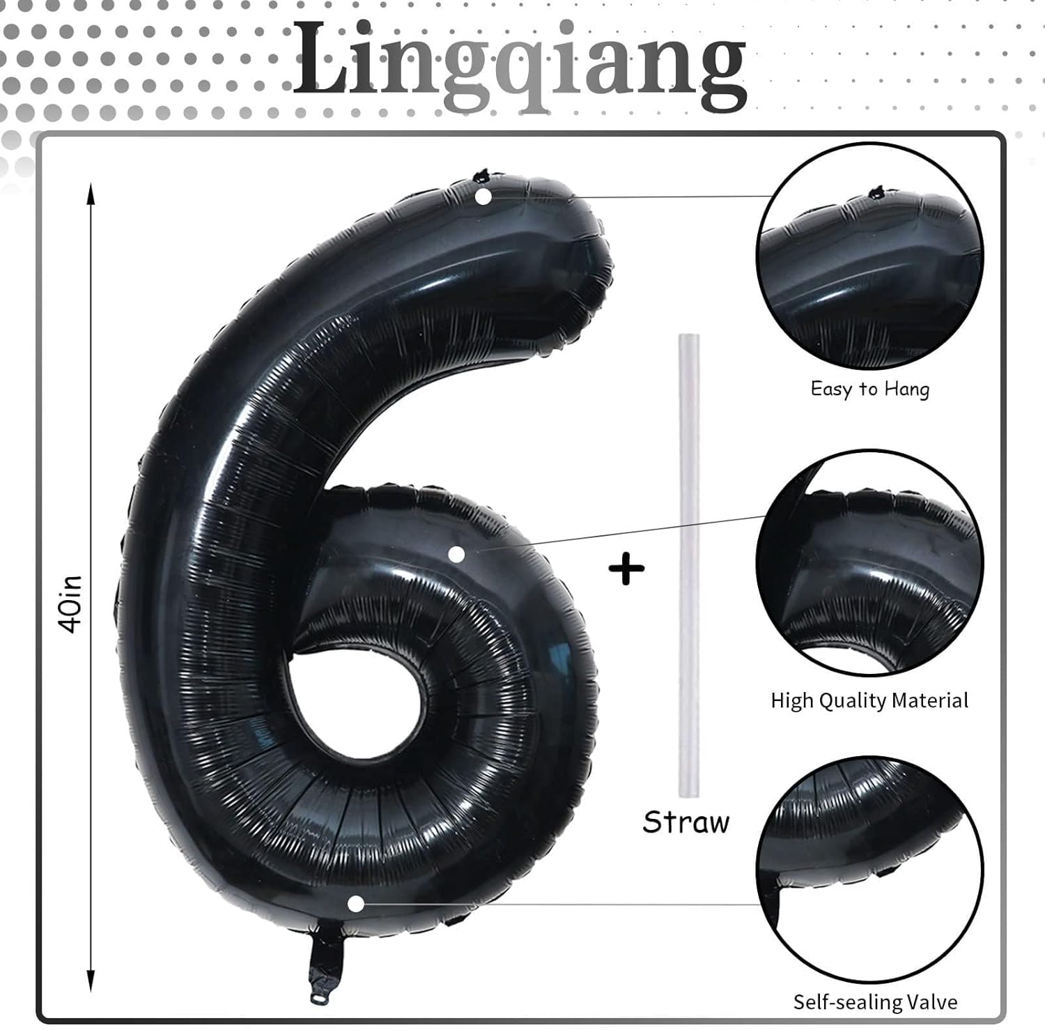 - π Black Number 6 Balloon π - You will get 1pc 40 inch mylar foil number 6 balloon and 1pc straw. Perfect for 6th 16th 26th 60th 65th birthday or anniversary party decorations supplies.