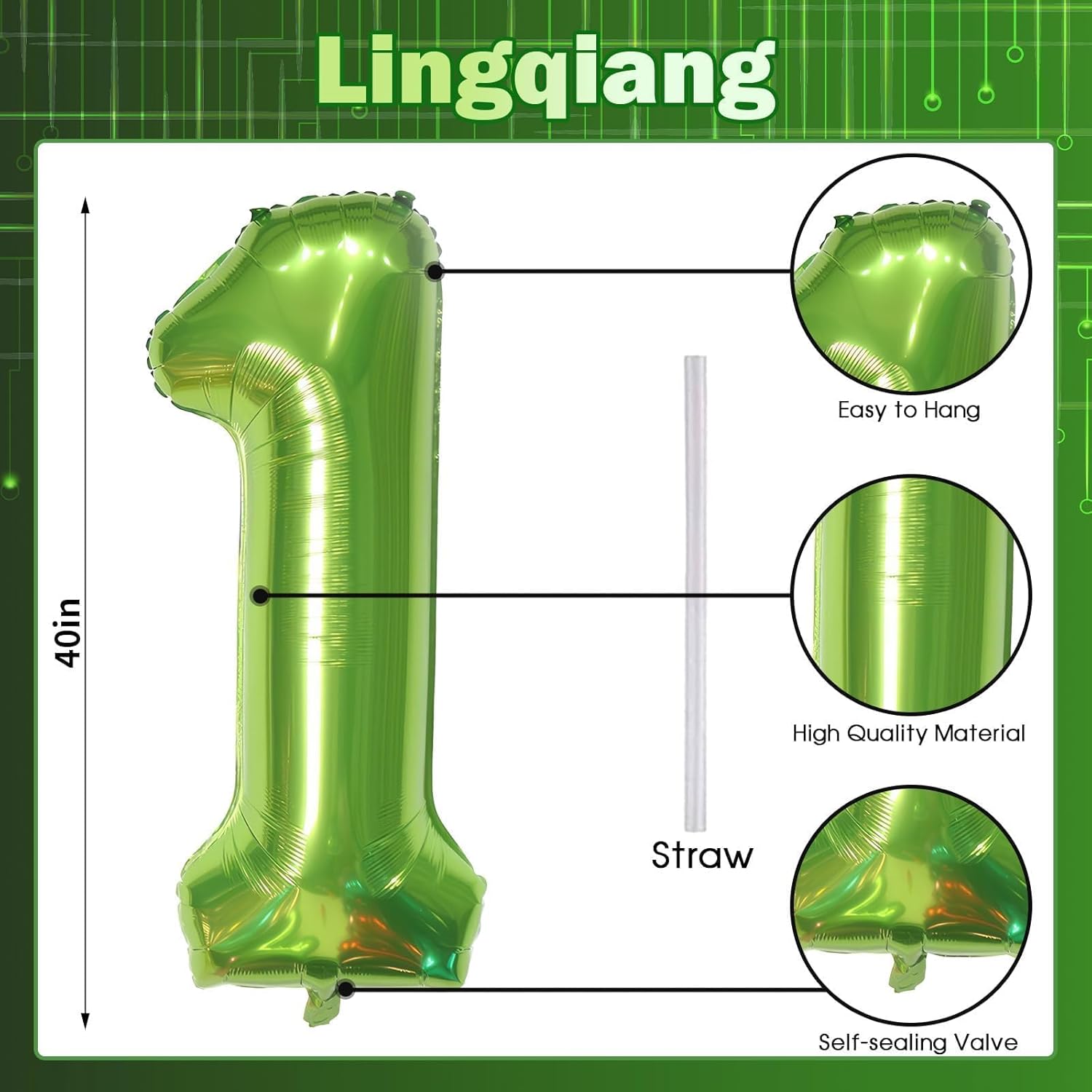- π Green Number 1 Balloon π - You will get 1pc 40 inch mylar foil number 1 balloon and 1pc straw. Perfect for 1st 10th 12th 13th 15th 16th 17th 18th 21st birthday or anniversary party decorations supplies.