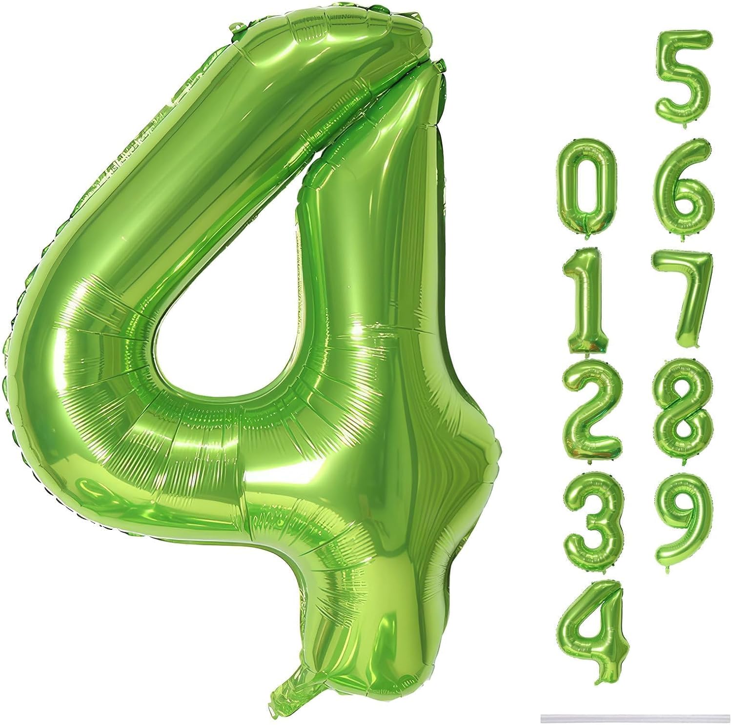- π Green Number 4 Balloon π - You will get 1pc 40 inch mylar foil number 4 balloon and 1pc straw. Perfect for 4th 14th 24th 40th 45th birthday or anniversary party decorations supplies.