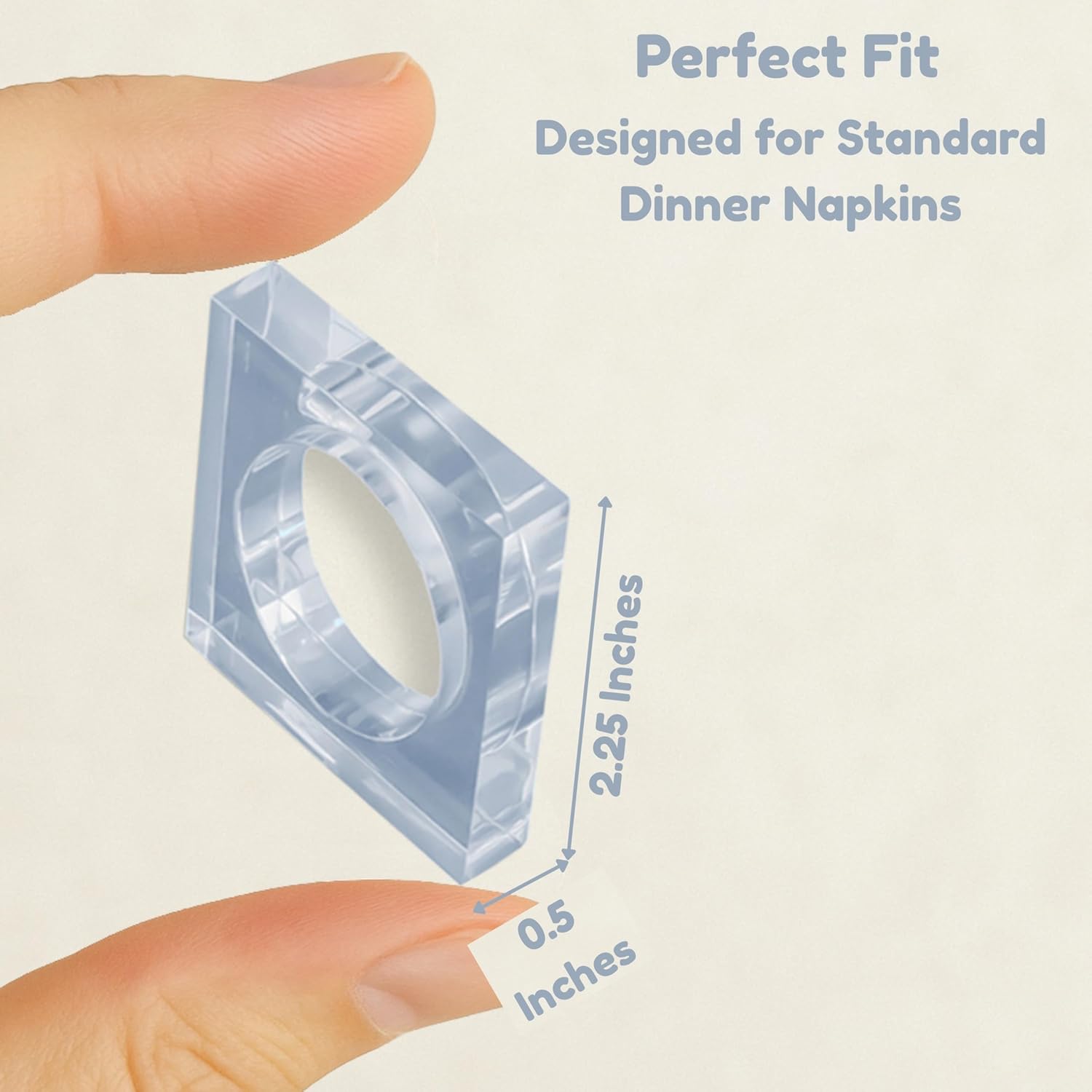 Acrylic Set of 12 Square Beveled Napkin Ring - Cloth Napkin Rings Serviette Buckles for Wedding, Birthday, Banquet, Table Décor, Home Décor, Gifting (Transparent) - CLEENTABLE