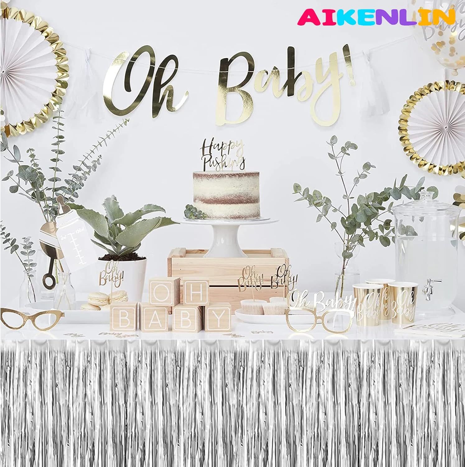 - 【Package Includes】6pcs/set metallic fringe table skirts / shiny tassel banner, beautiful and shiny, provide you with great decoration effects, Each pack of table skirt measures 29x108 inches. Each one will be 9 Ft long, 6 pack will cover 54 FT length of tables.