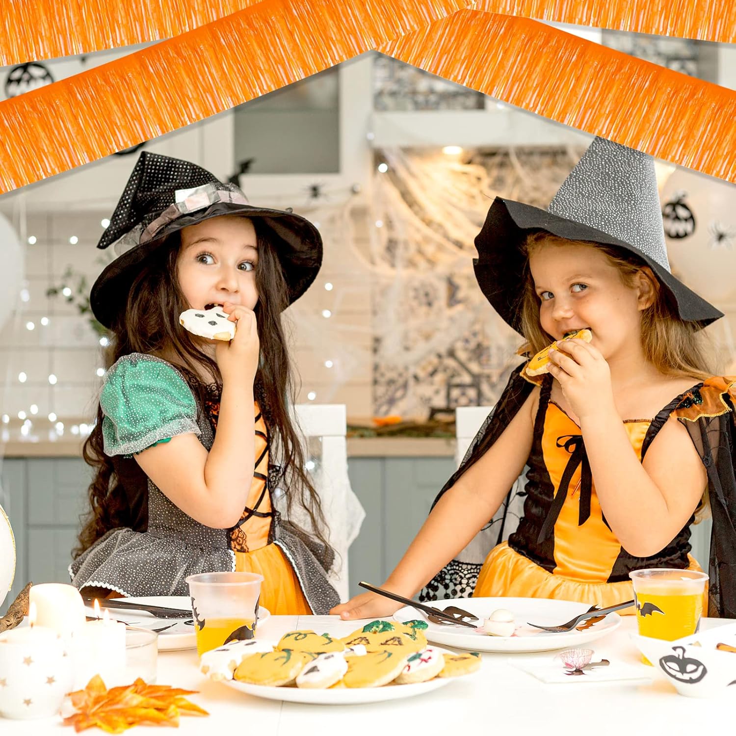 10 Pack 10 Feet Foil Fringe Garland Metallic Tinsel Streamers Banner Wall Hanging Curtain Backdrop for Parade Floats, Bachelorette, Wedding, Birthday, Halloween, Christmas Party Decorations(Orange)