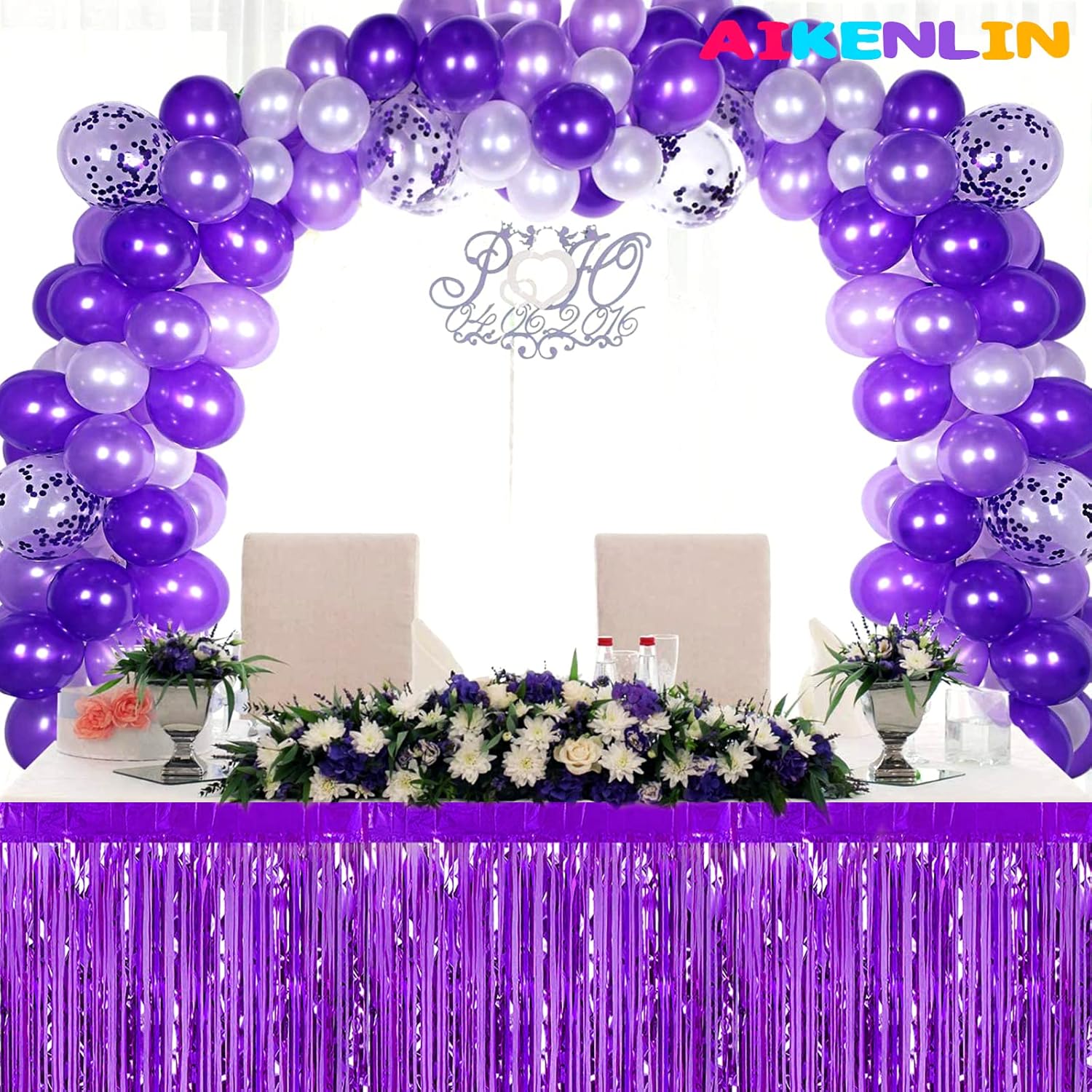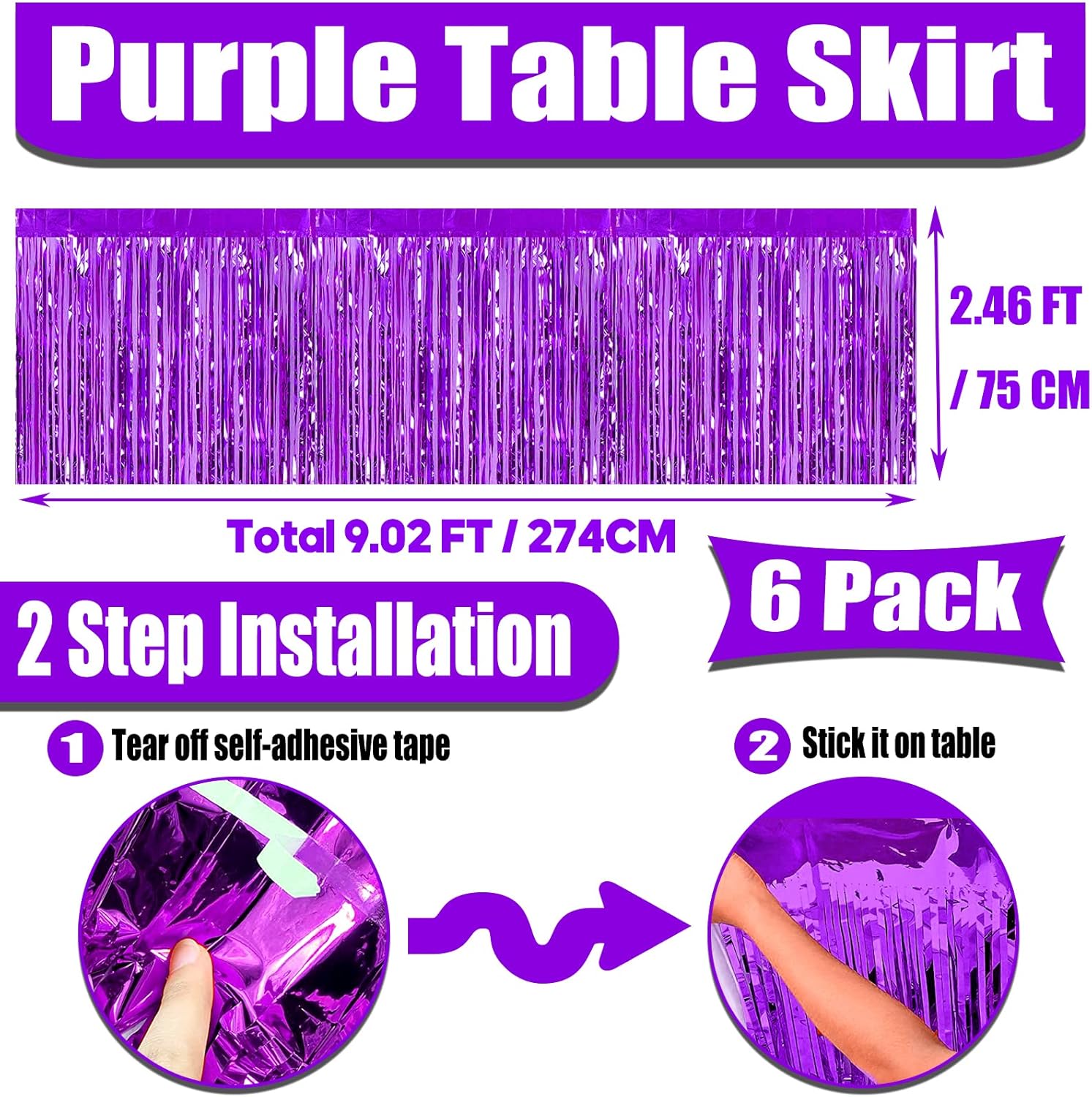 6 Pack 29x108 Inch Metallic Foil Fringe Tinsel Table Skirts Banner for Rectangle Tables Streamer Garland Curtains Backdrop for Wedding, Birthday, Parade Floats, Halloween Party Decoration(Purple)