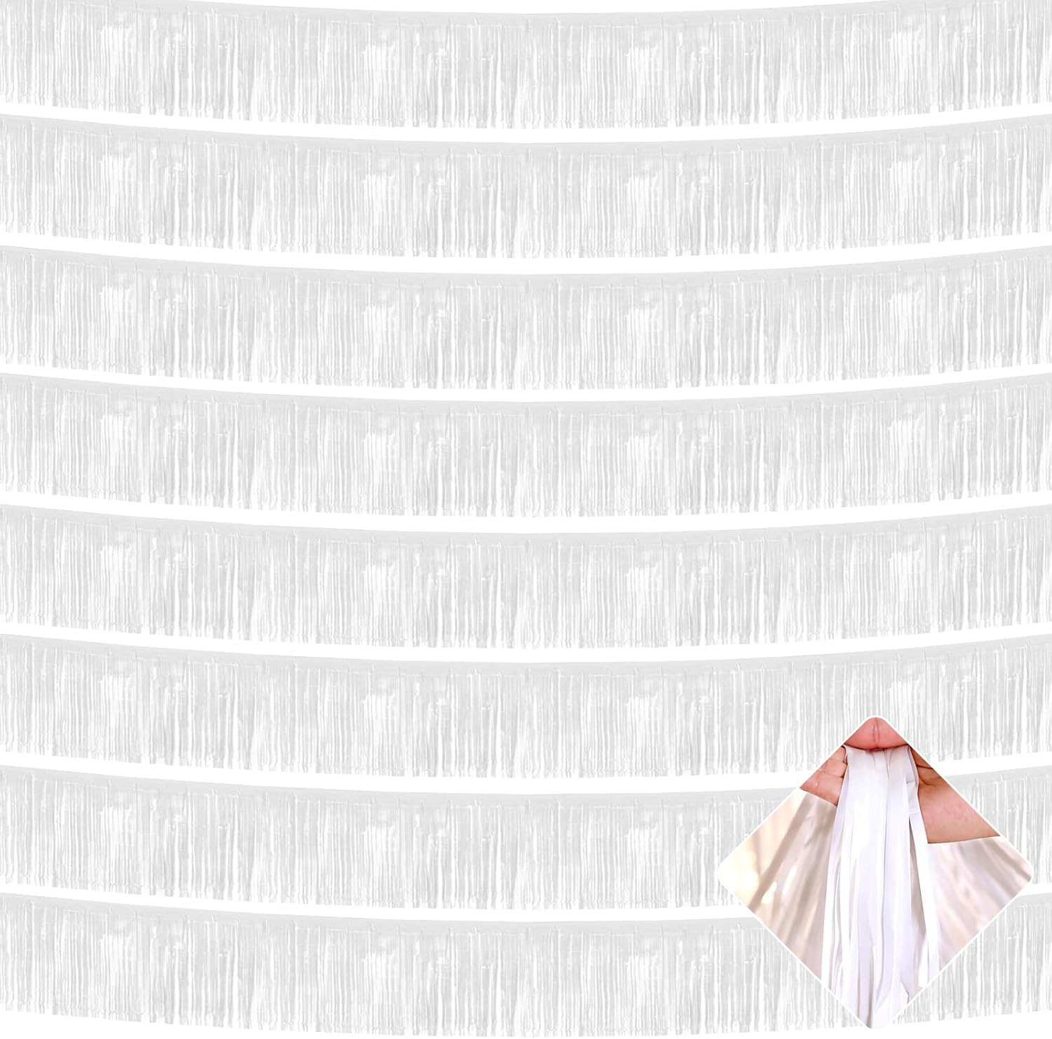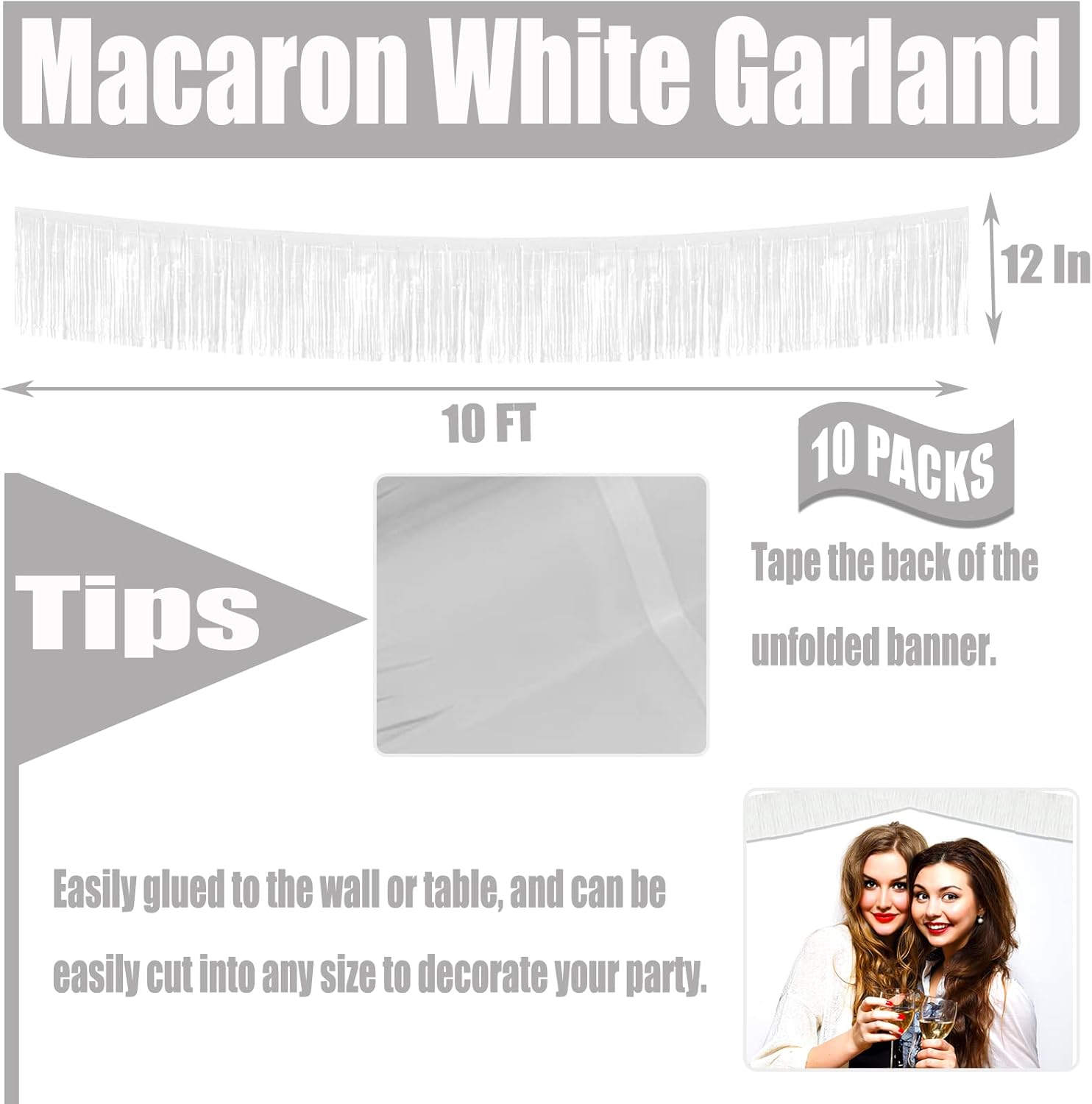 10 Pack 10 Feet Foil Fringe Garland Metallic Tinsel Streamers Banner Wall Hanging Curtain Backdrop for Parade Floats, Bachelorette, Wedding, Birthday, Halloween, Christmas Party Decorations(White)