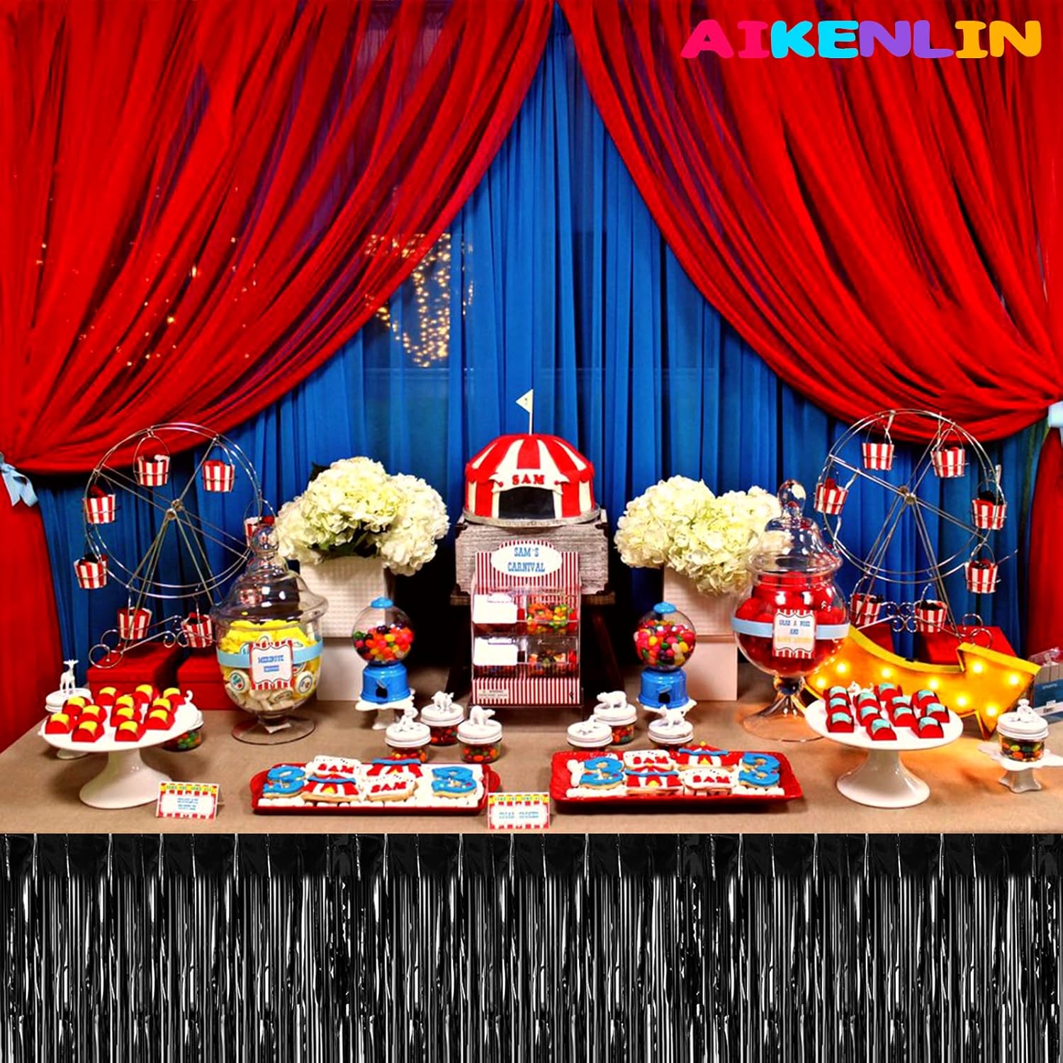 - 【Package Includes】6pcs/set metallic fringe table skirts / shiny tassel banner, beautiful and shiny, provide you with great decoration effects, Each pack of table skirt measures 29x108 inches. Each one will be 9 Ft long, 6 pack will cover 54 FT length of tables.