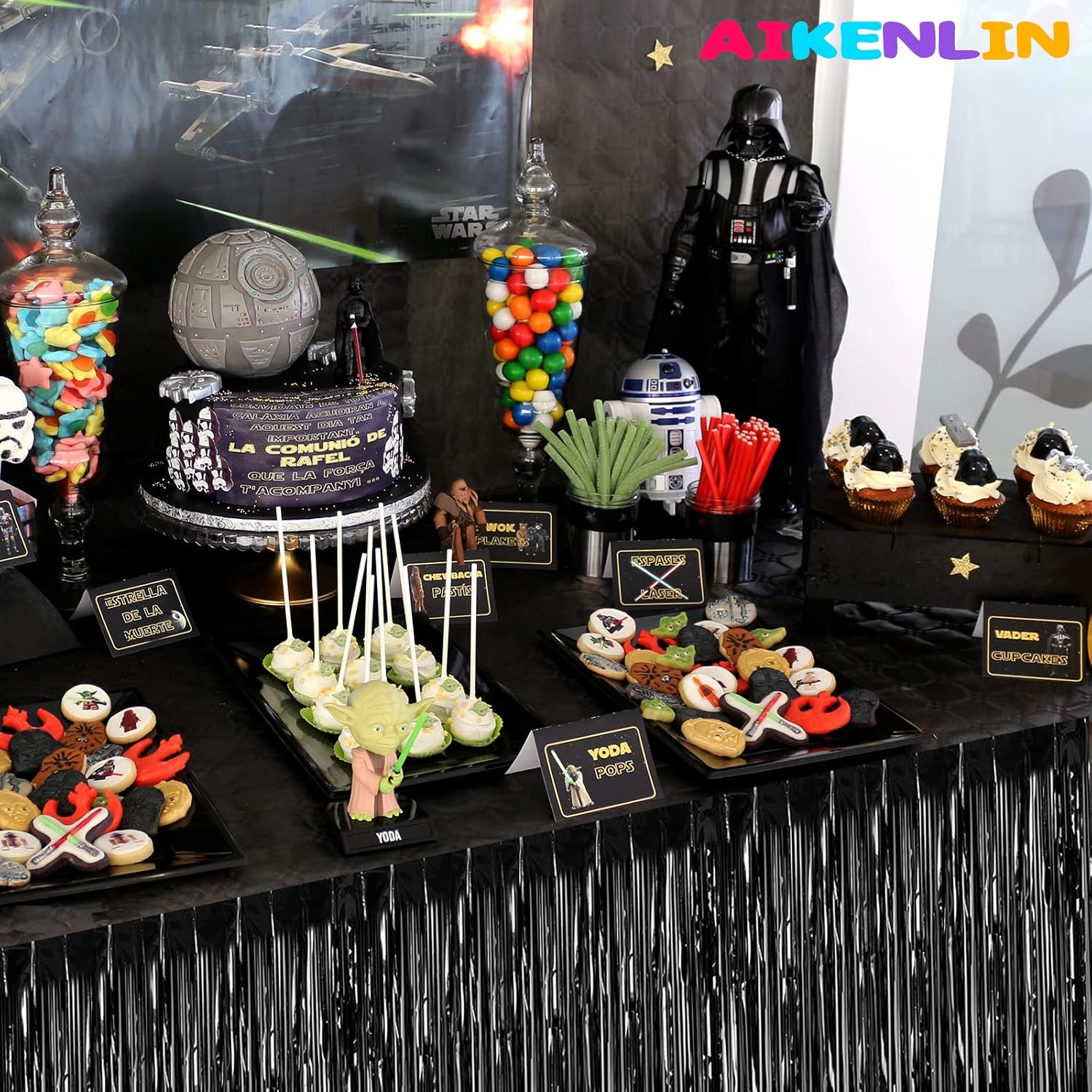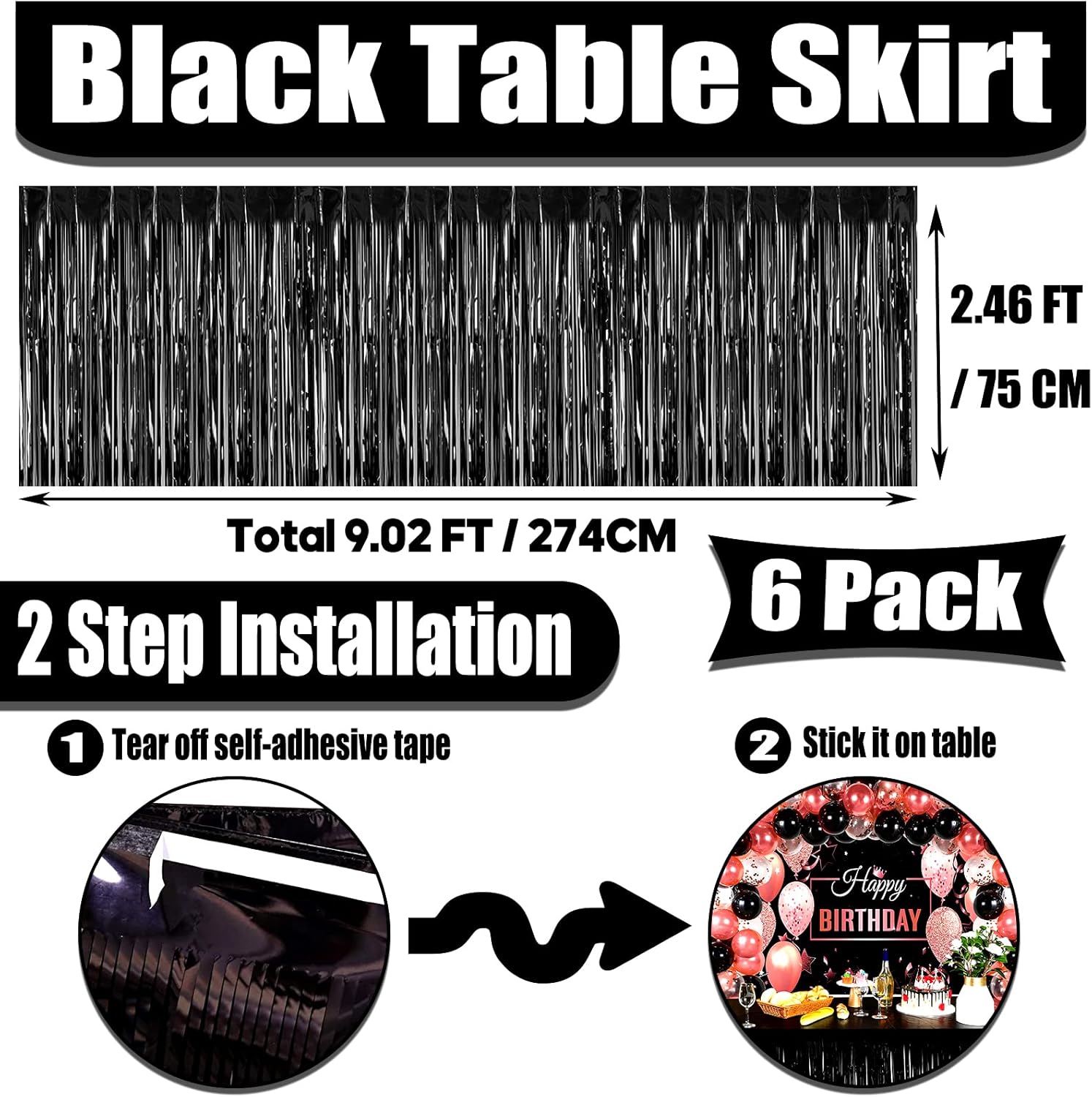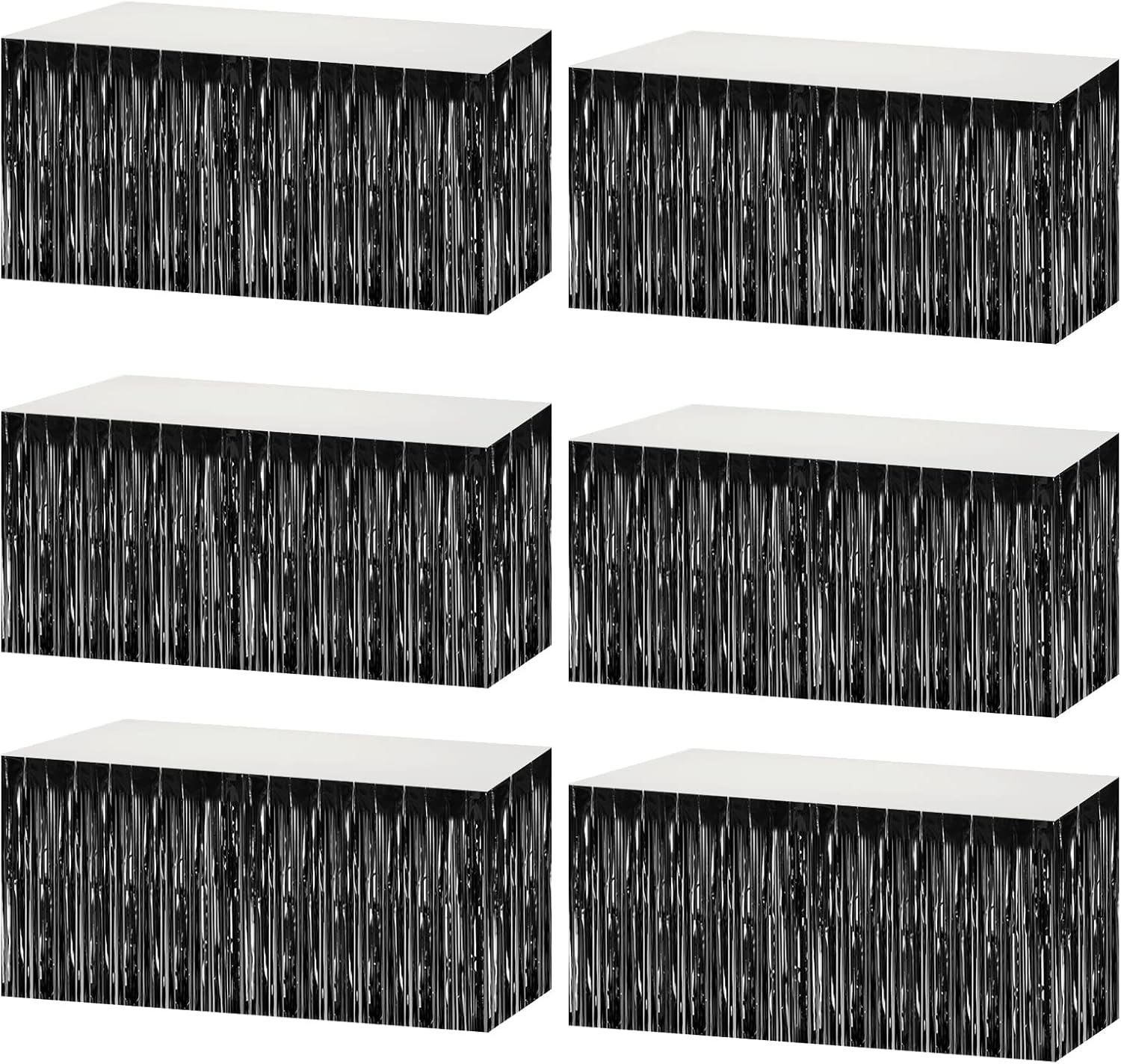 6 Pack 29x108 Inch Metallic Foil Fringe Tinsel Table Skirts Banner for Rectangle Tables Streamer Garland Curtains Backdrop for Wedding, Birthday, Parade Floats, Christmas Party Decoration(Black)