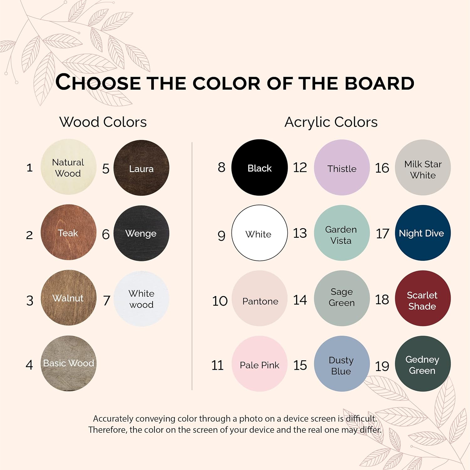- COLORED LETERS: It is also possible to choose one of the designs with your name or initials and the date of your choice. In the center, your inscription can be black, white, silver or gold.