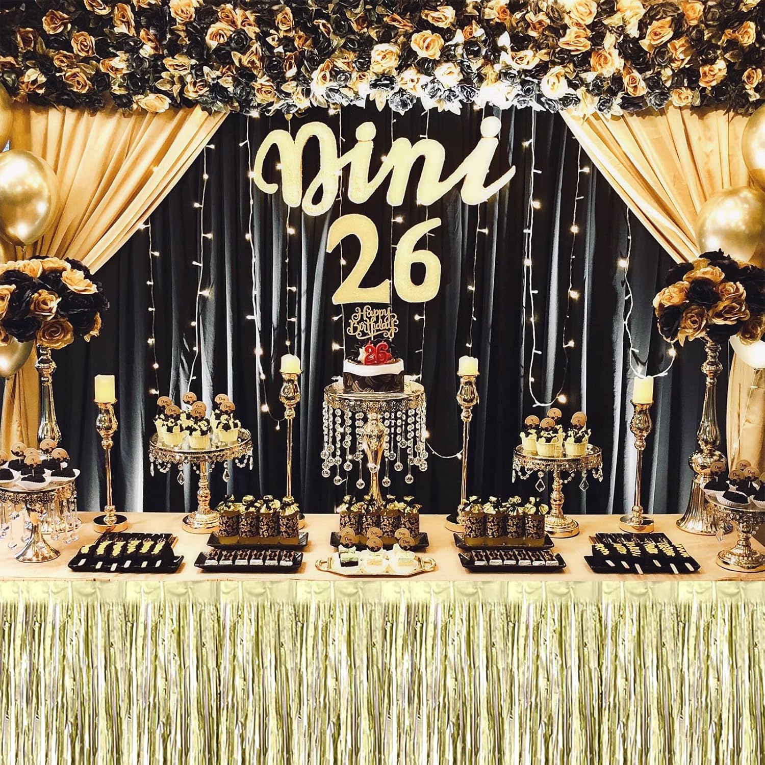 - 【Newest Shiny Foil table skirt】Metallic tassel table skirt are made of aluminum foil with sequins, making the foil table skirt more shiny and beautiful, making the party more complete!