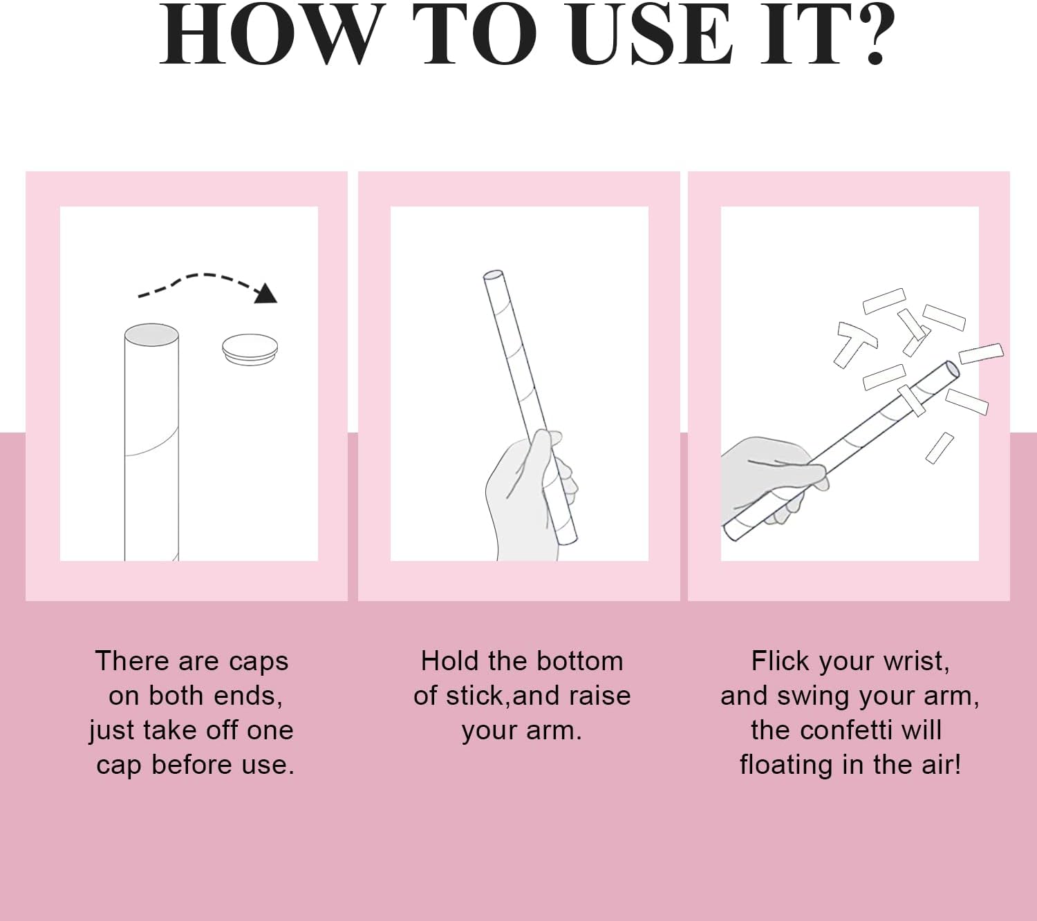 - Easy to USE & Safe : Just open the cap, swing your arm and flick the sticks, the paper confetti flick will flutter in the air, can be used indoor or outdoor party. It's great for party decoration, take gorgeous photos, surprise you friends