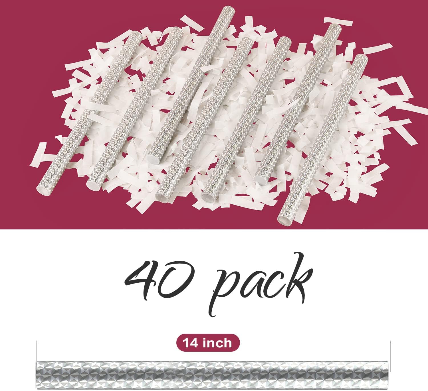 BATTIFE 40Pack White Confetti Wands, 14 Inch Tissue Paper Confetti, Flick Flutter Sticks for Wedding, Celebrations, Anniversary, Birthday, Graduation Party
