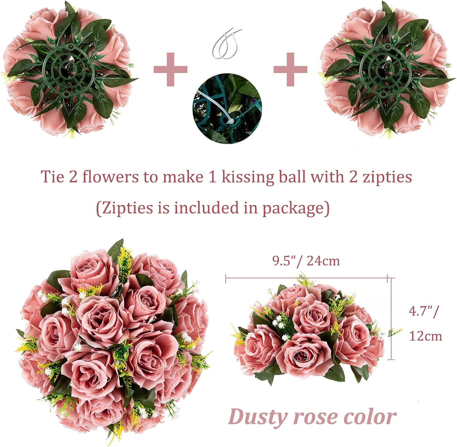 BLOSMON Dusty Pink Flowers Decoration: 6 Pcs Artificial Roses Flowers Balls for Wedding Dinning Table Centerpieces - Fake Silk Kissing Floral Arrangement for Home Party Event