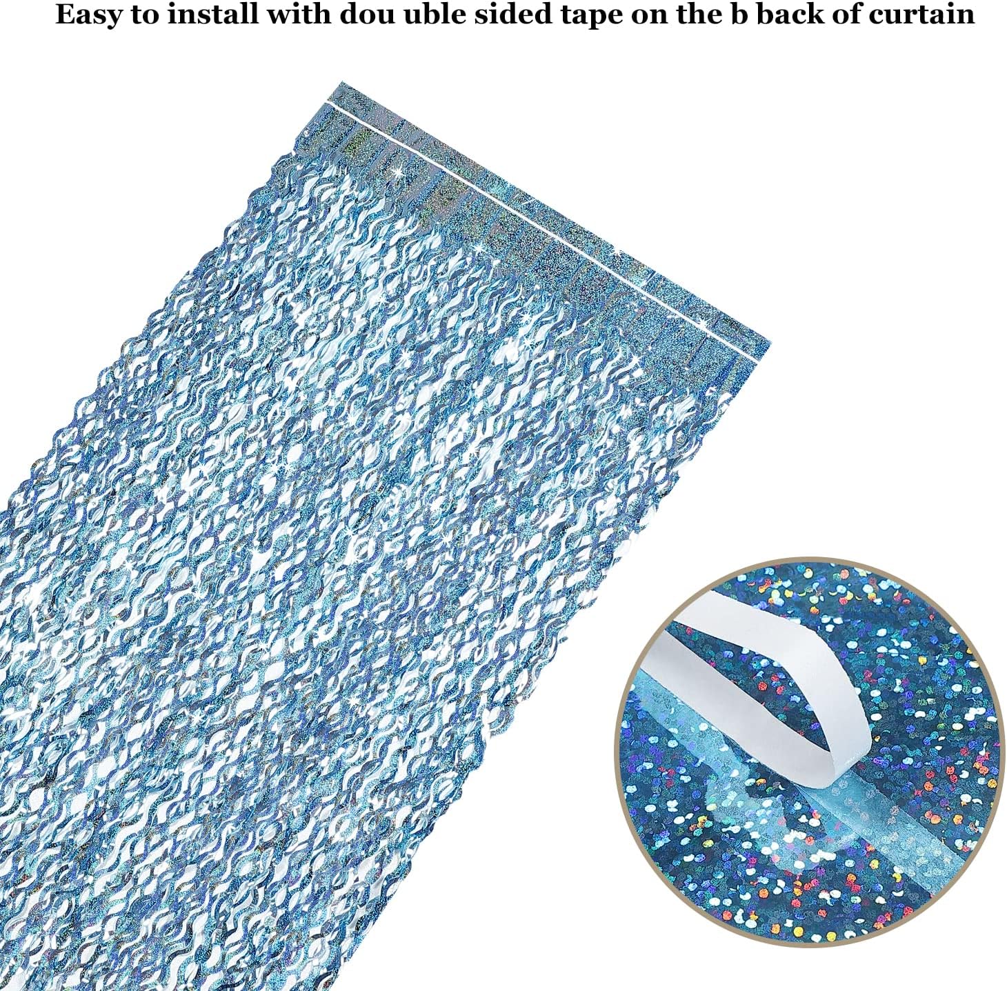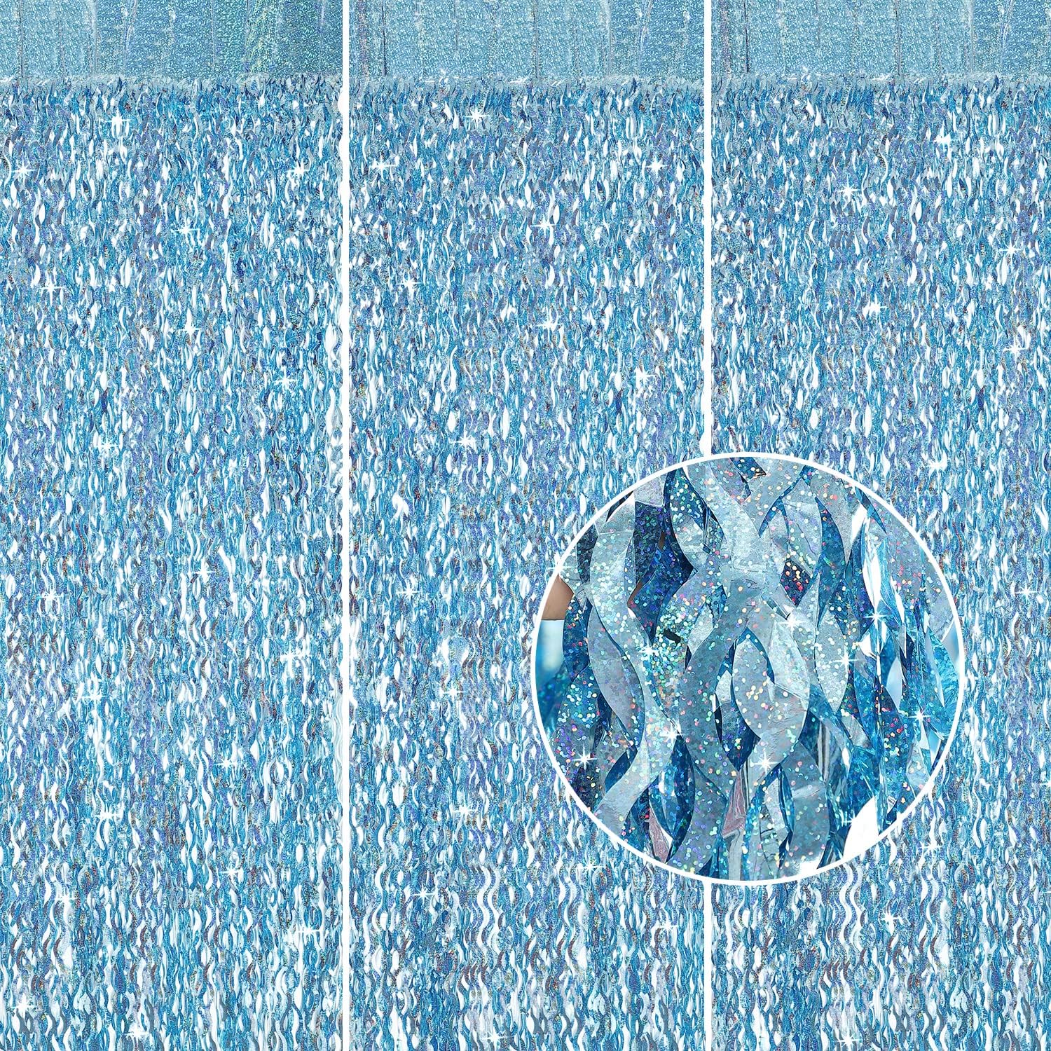 - Packing Included: 3 packs light blue tinsel foil fringe curtains party photo backdrop,Each pack curtains size is 3.3ft x 6.6ft, enough length for decorate your party