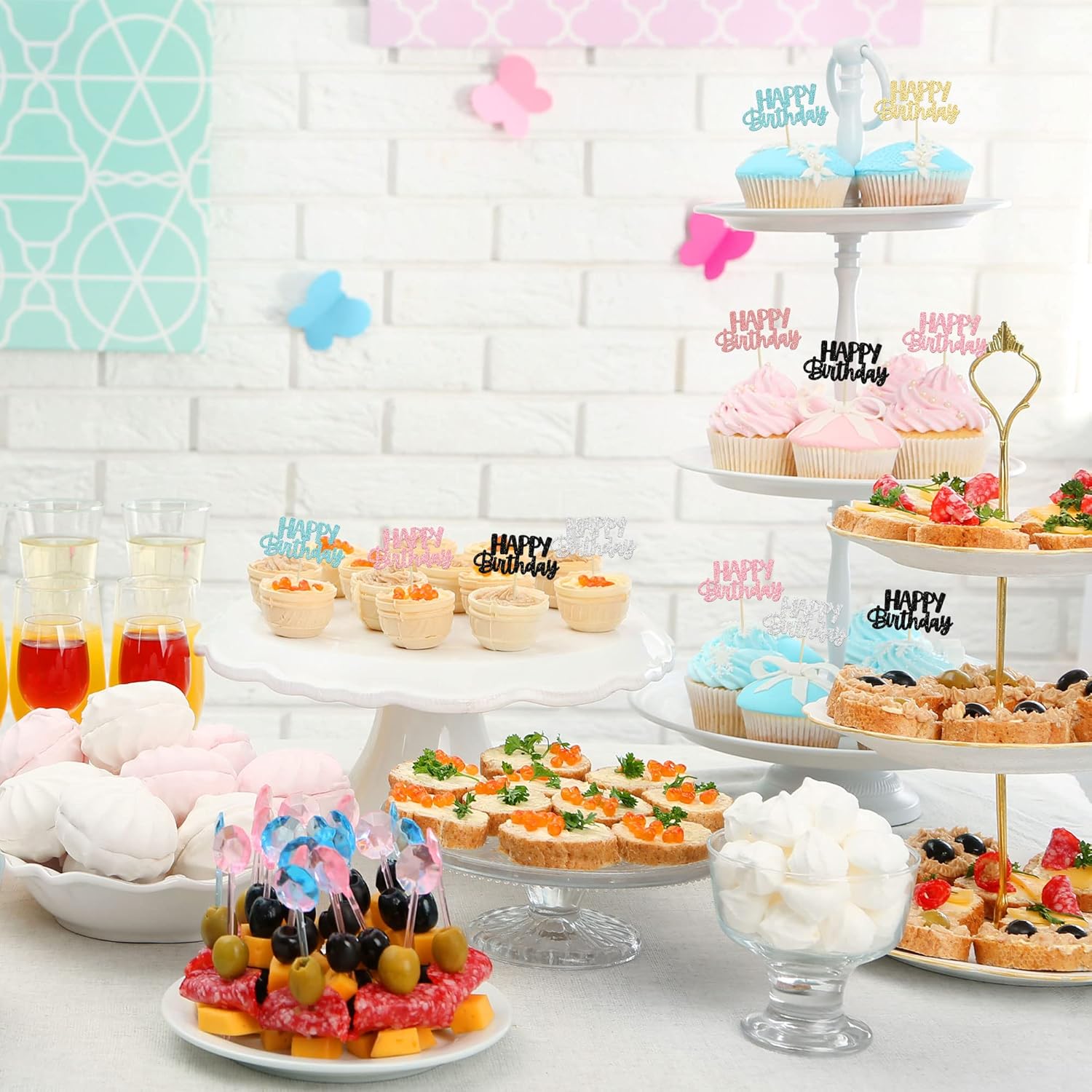 - ๐ Premium Material: These glitter happy birthday cupcake Toppers are made of high quality paper and food-grade toothpick, very safe to put them on cakes, cupcakes, ice cream, fruits, pie, dessert, cheese or any dish and food appetizer you want to decorate.