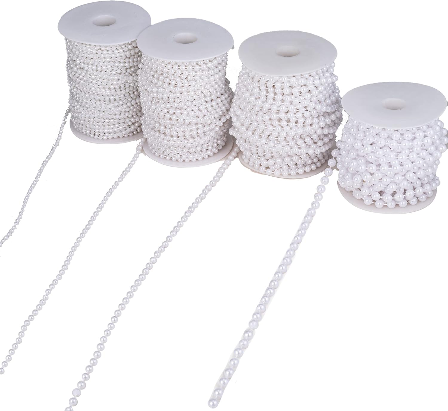 4mm Crafts Faux Pearl Beads Garland Pearl Bead Roll Strand of Pearls to Decorate Floral Centerpieces Wedding Party Favor Christmas Tree(131 Feet Ivory)
