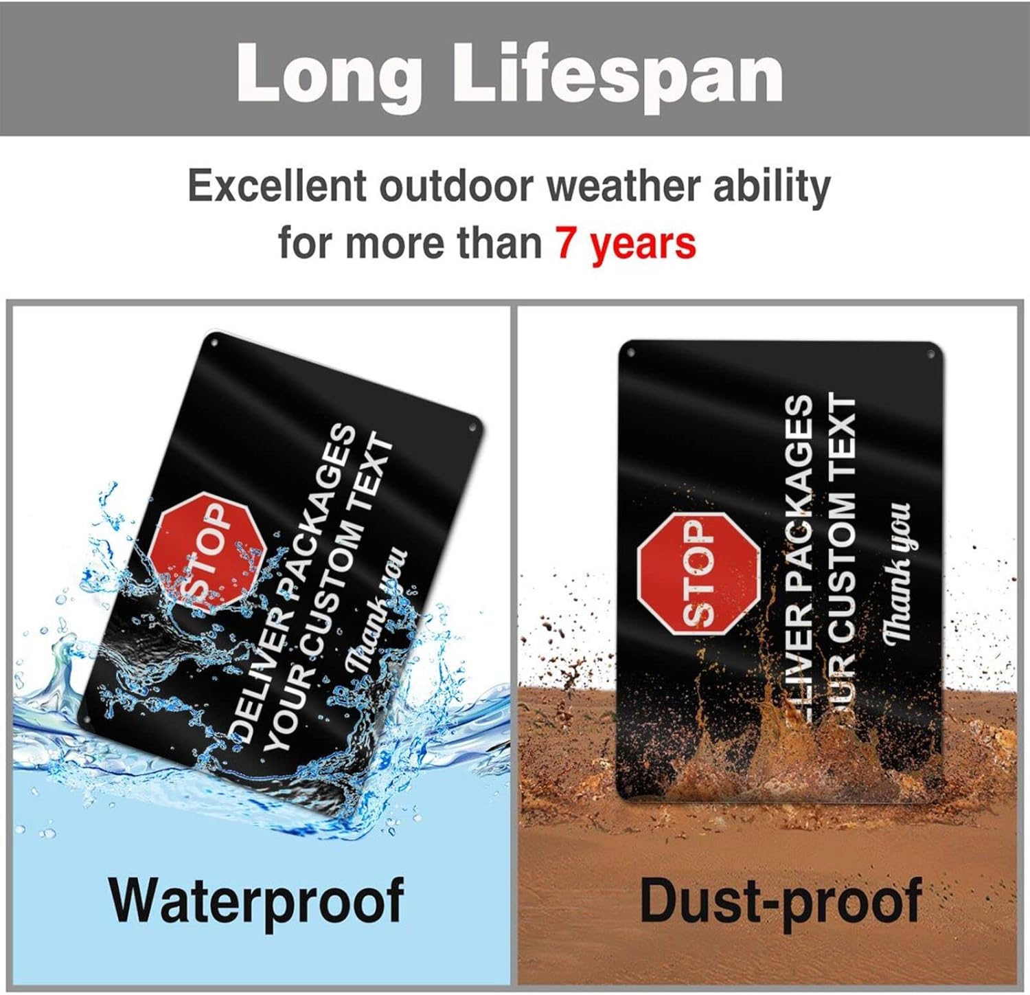 - Our metal signs are made of high-quality aluminum metal, it is rust-proof and durable, can be used for a long time and the text is clear and easy to read. The surface of the sign has a protective coating to withstand sun, snow, rain and cold.