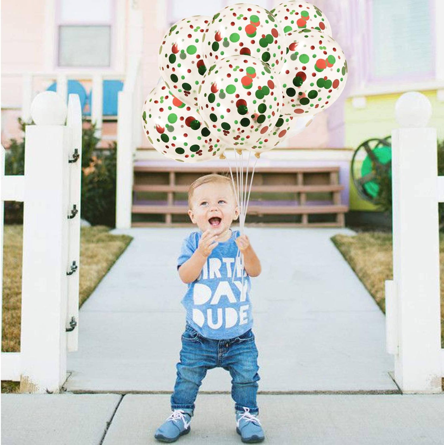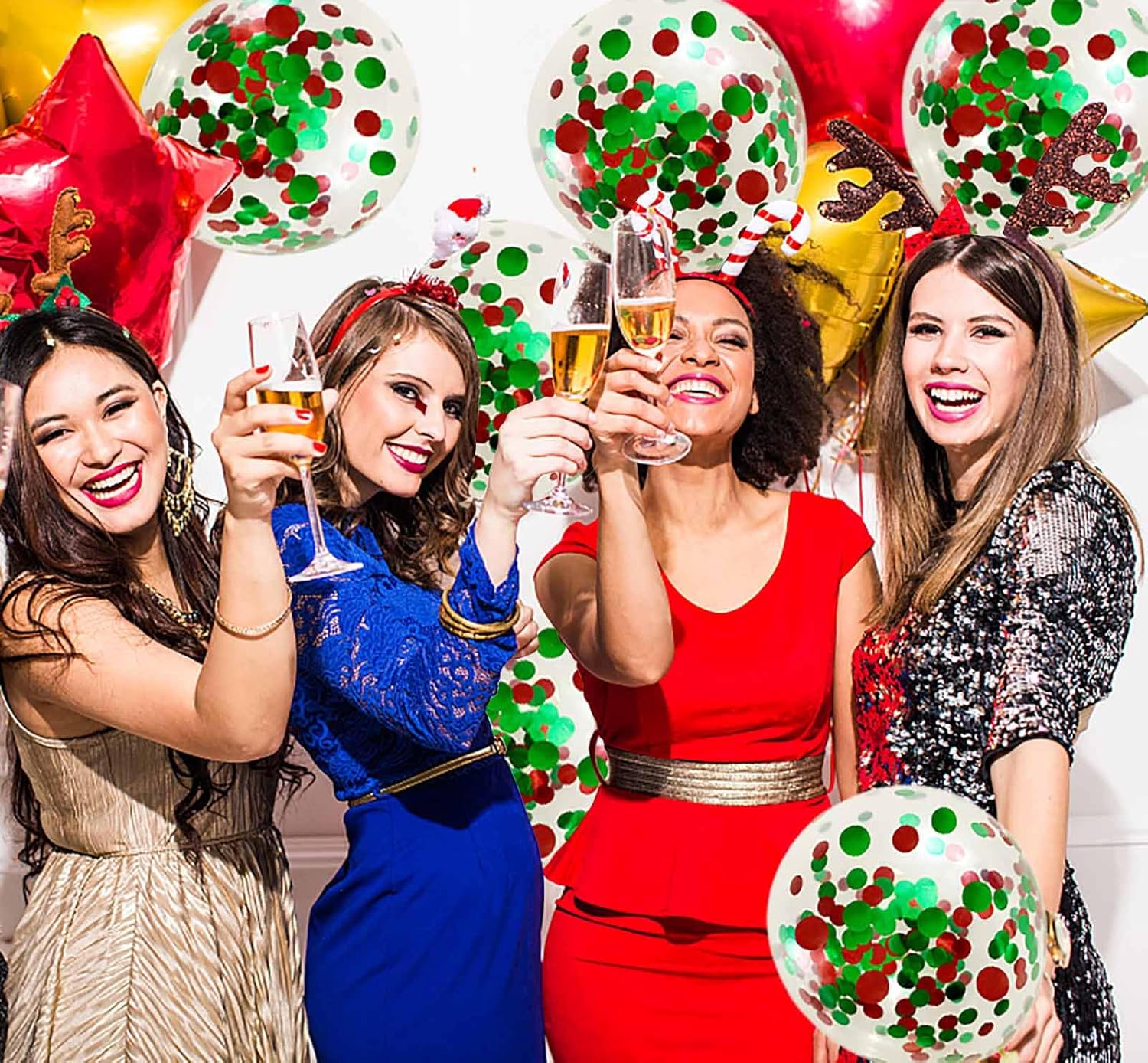 - YOU WILL GET: The red green balloons set including 50 pcs confetti party balloons. all of them filled with red green paper confetti dots already put in the transparement latex balloons. they can both hold helium and air. perfect for decoration any party.