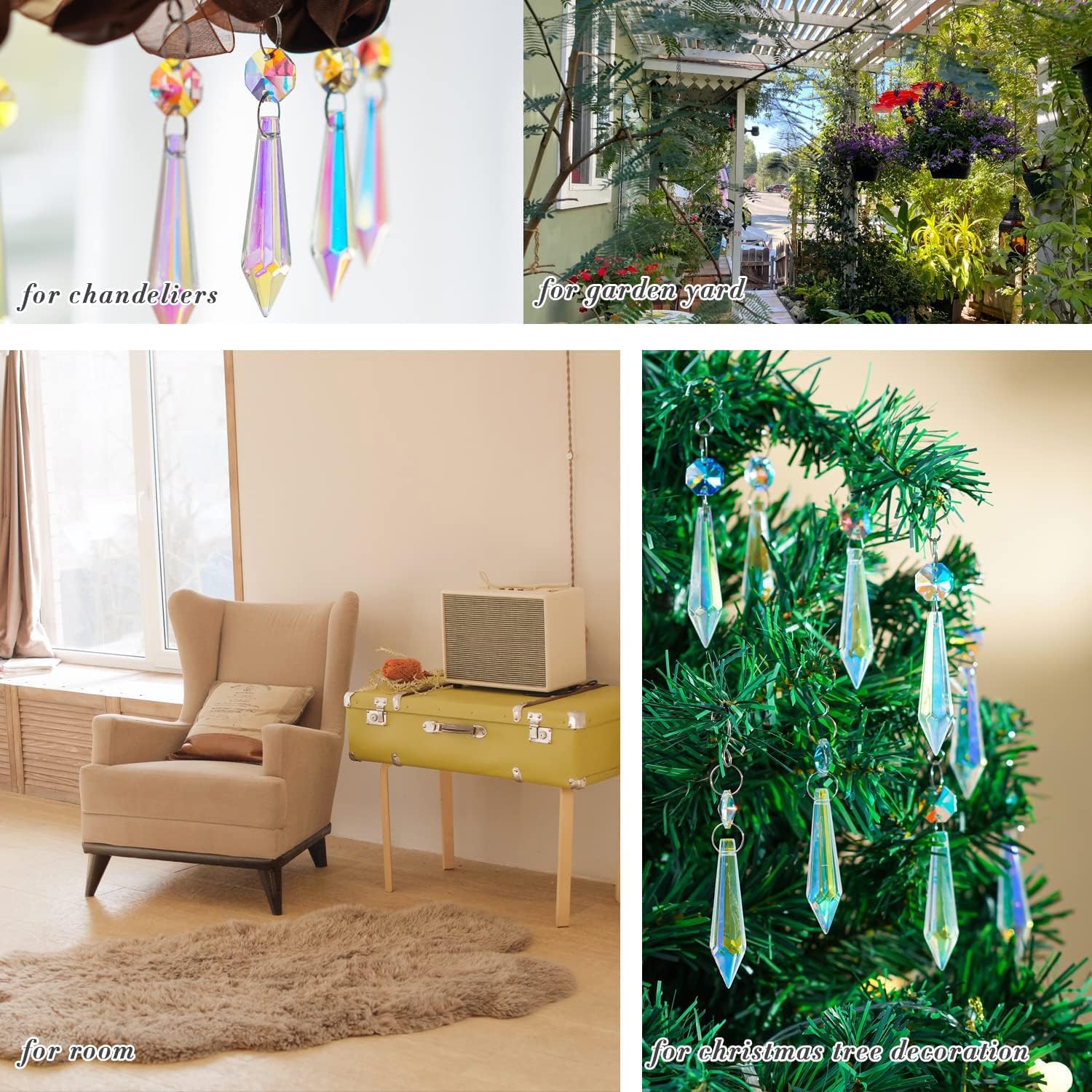 - What you get: 20 Pack 3.9" Chandelier Icicle Crystals,Color: AB.Each crystal glass icicle main chandelier prisms measures 55 mm / 2.2" and includes 14 mm / 0.55" top jewel octagon beads, and has a total hang of 3.9"/ 99 mm, connected with stainless jump rings to there is a hook make hanging simple