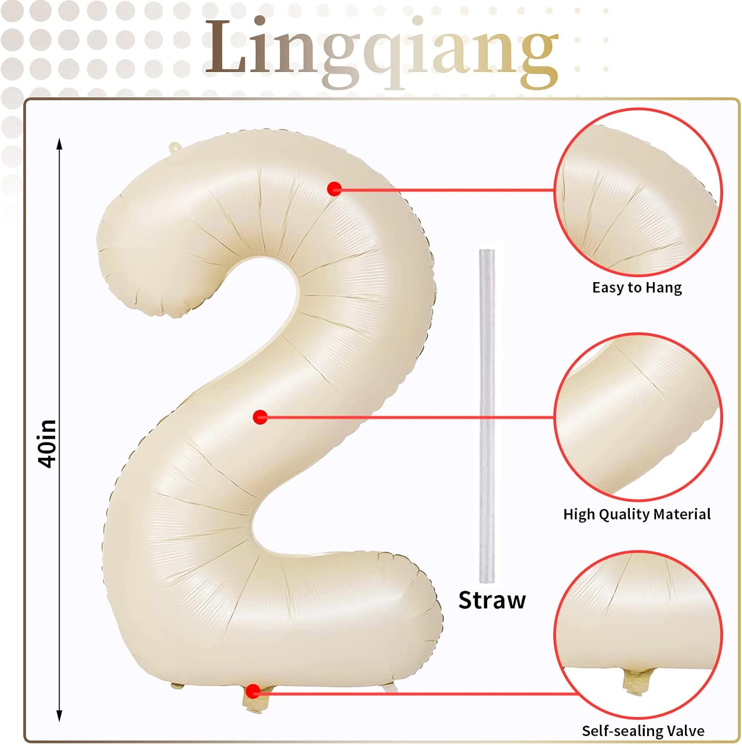 - π Beige Number 2 Balloon π - You will get 1pc 40 inch mylar foil number 1 balloon and 1pc straw. Perfect for 2nd 12th 20th 21st 25th birthday or anniversary party decorations supplies.