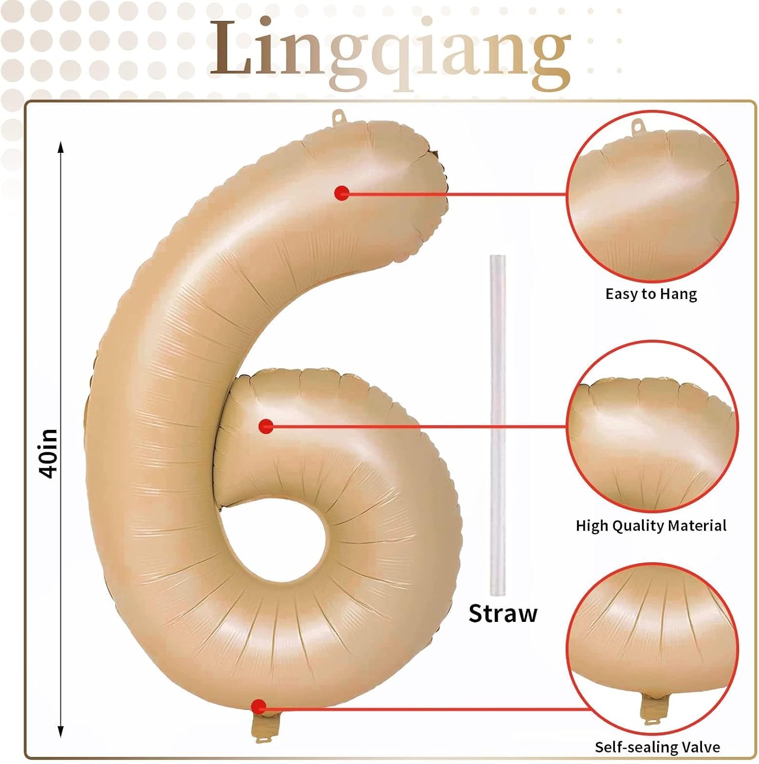 - π Easy to Inflate π - The big light brown number 6 foil balloons have self-sealing valve does not need to be knotted for easy inflation and deflation. It can be inflated with air or helium. When filled with helium, the balloons can float in the air; after filling, press the valve of the digital balloon to seal it. It can be reused. Do not throw away after use!