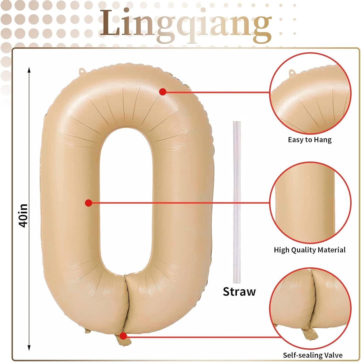 - π Easy to Inflate π - The big light brown number 0 foil balloons have self-sealing valve does not need to be knotted for easy inflation and deflation. It can be inflated with air or helium. When filled with helium, the balloons can float in the air; after filling, press the valve of the digital balloon to seal it. It can be reused. Do not throw away after use!