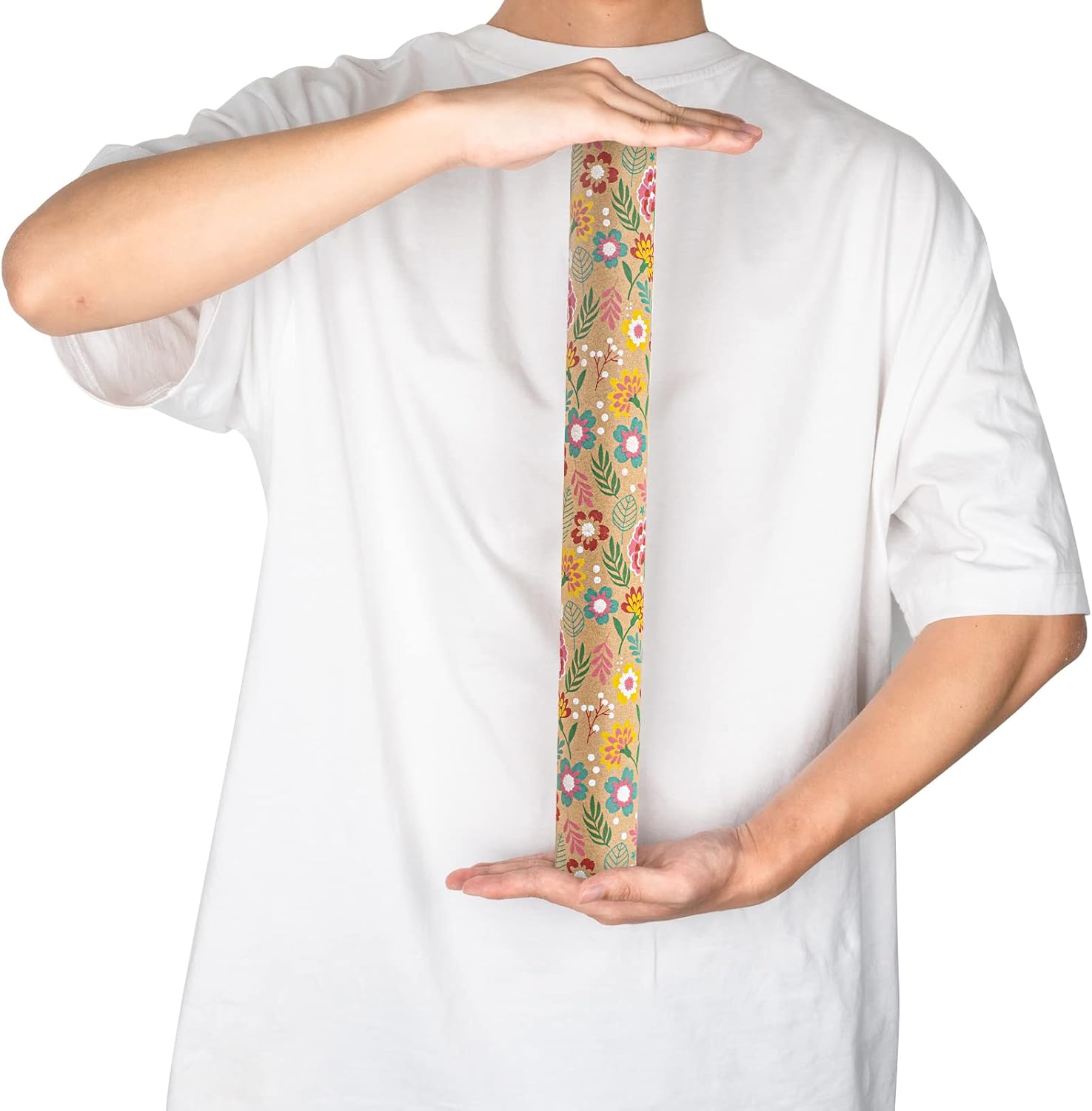 RUSPEPA Kraft Wrapping Paper Roll - Mini Roll - Carnation Design Great for Mother's day, Birthday, Party, Anniversary - 17 Inches X 32.8 Feet