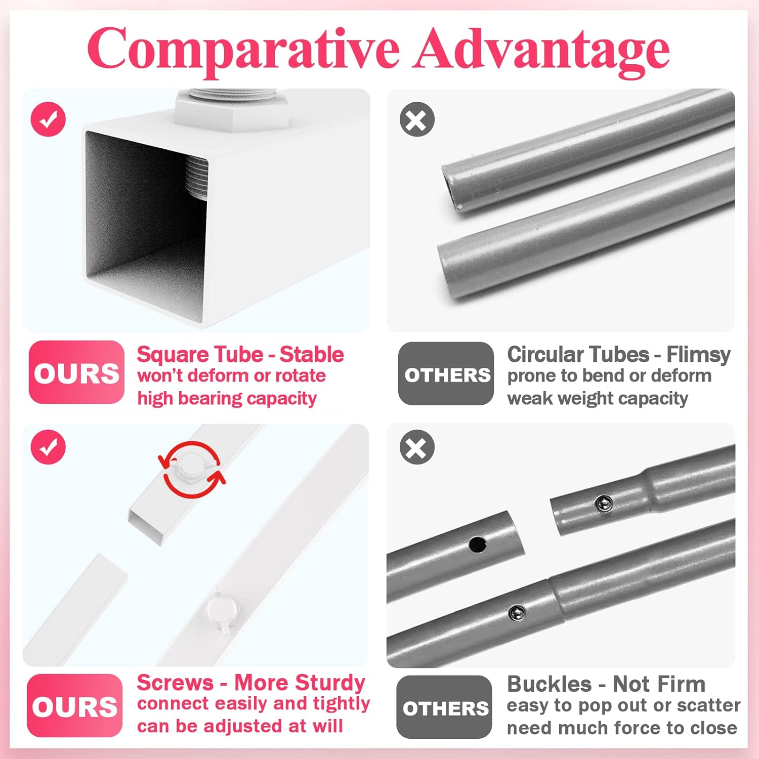 - 【Stable Base Additional Crossbar】Metal arch backdrop stand with a cross bar on the base making the metal gold wedding arch more stable. Adding some decorative elements to the base can also increase stability. Decorate square wedding arch with flowers, greenery, garlands, tulle swags or vines to make your event stand out.