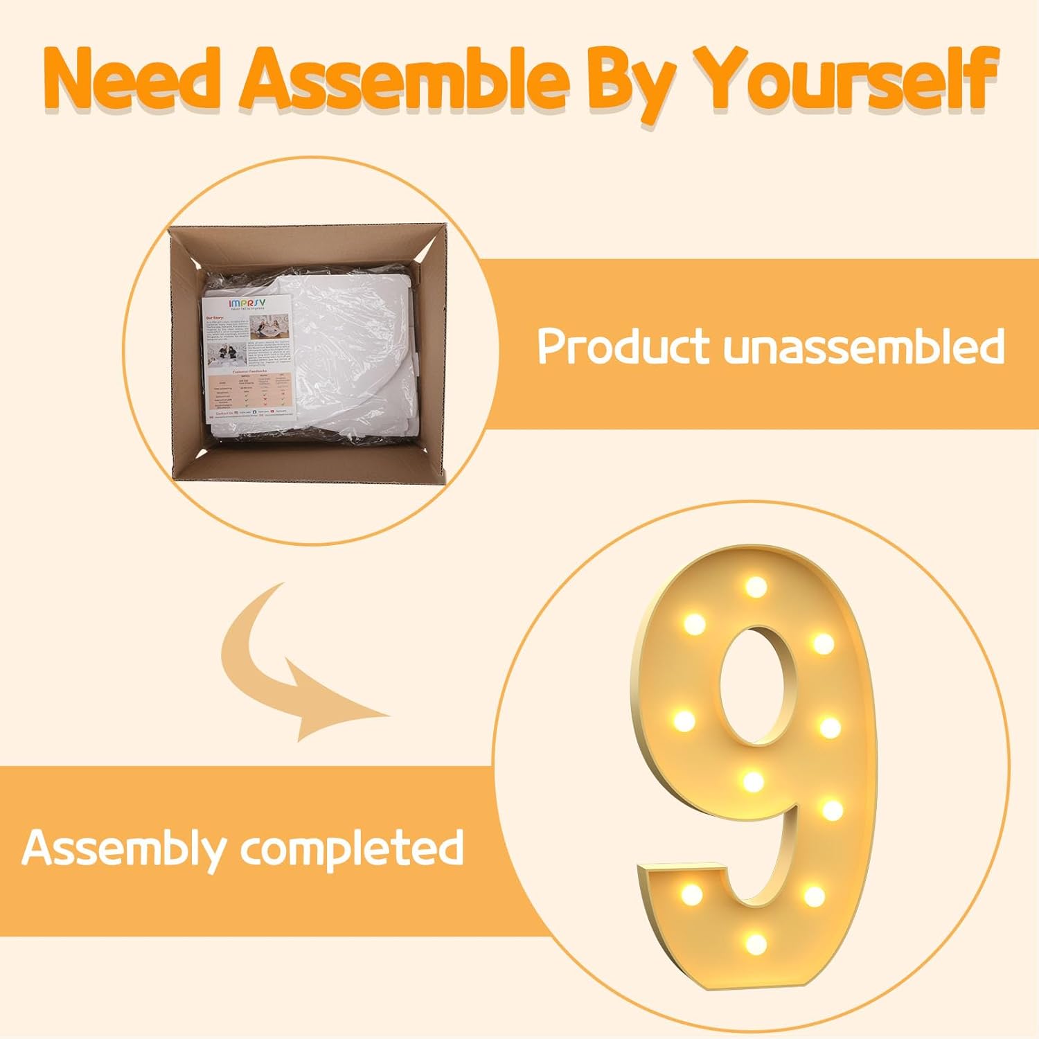 - Assembly Required: Our large marquee numbers is made from foam board and easy to assemble with our splicing mode. Just follow the numbered instructions to align and insert the bottom plate, and reinforce it with a hot glue gun. Then, you're done!