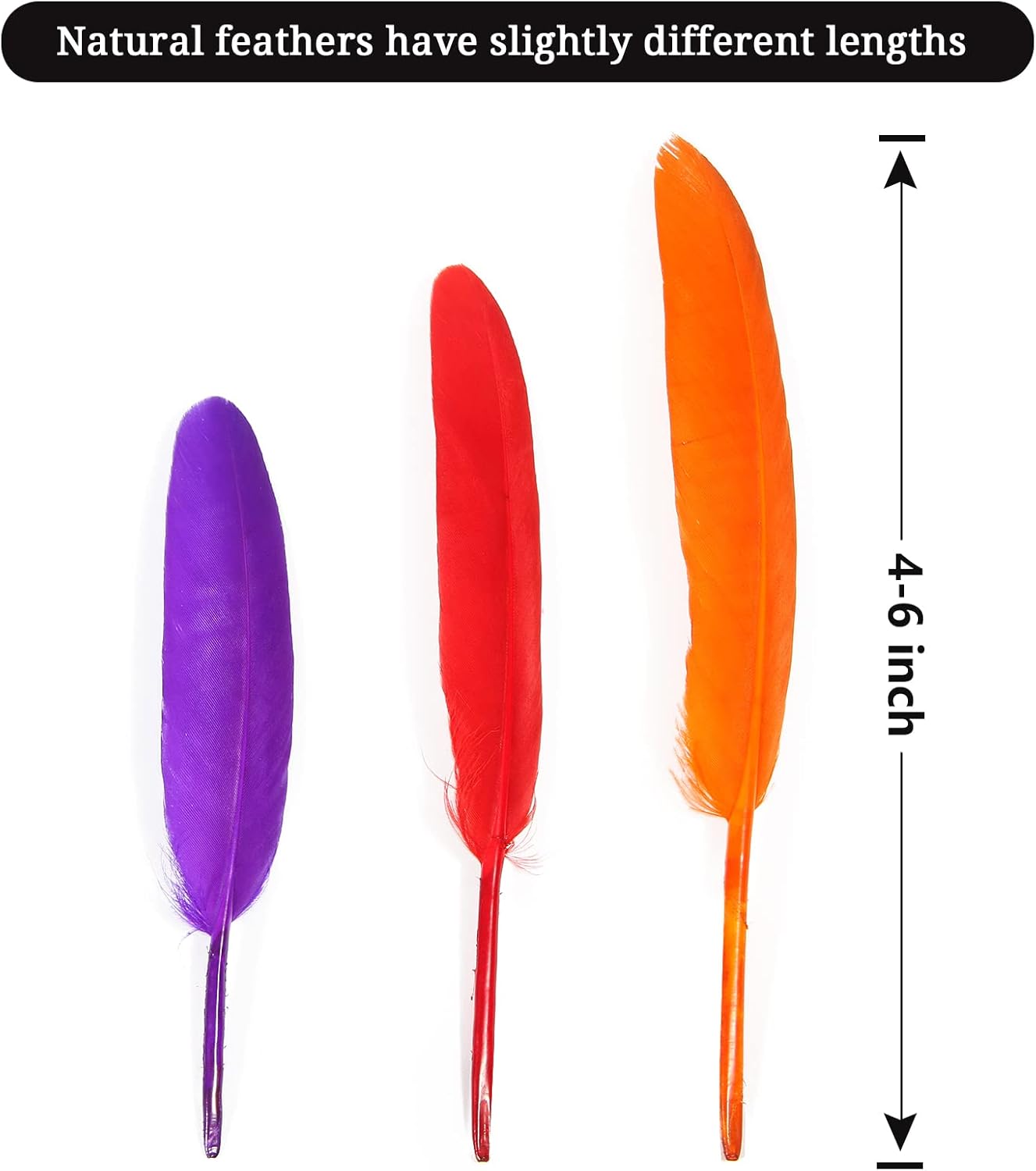 - 🦢Product Specifications:length:4-6inch,10-15cm long.120pcs/bag. Goose Feathers are soft to touch in hand. Because all feathers are purely natural, there may be slight deviations in size, length, and shape.