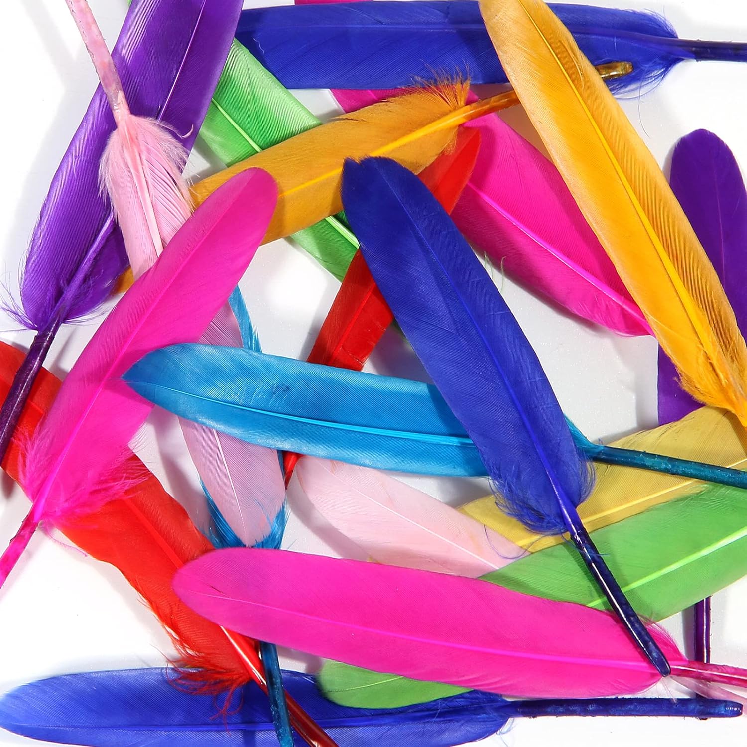 FeelfunFeather 120pcs Mix Colur Goose Cochettes Feather 4-6 inch 10-15cm Bulk Natural for Wedding Party Halloween Decorations DIY Cosplay Gothic Costumes Crafts