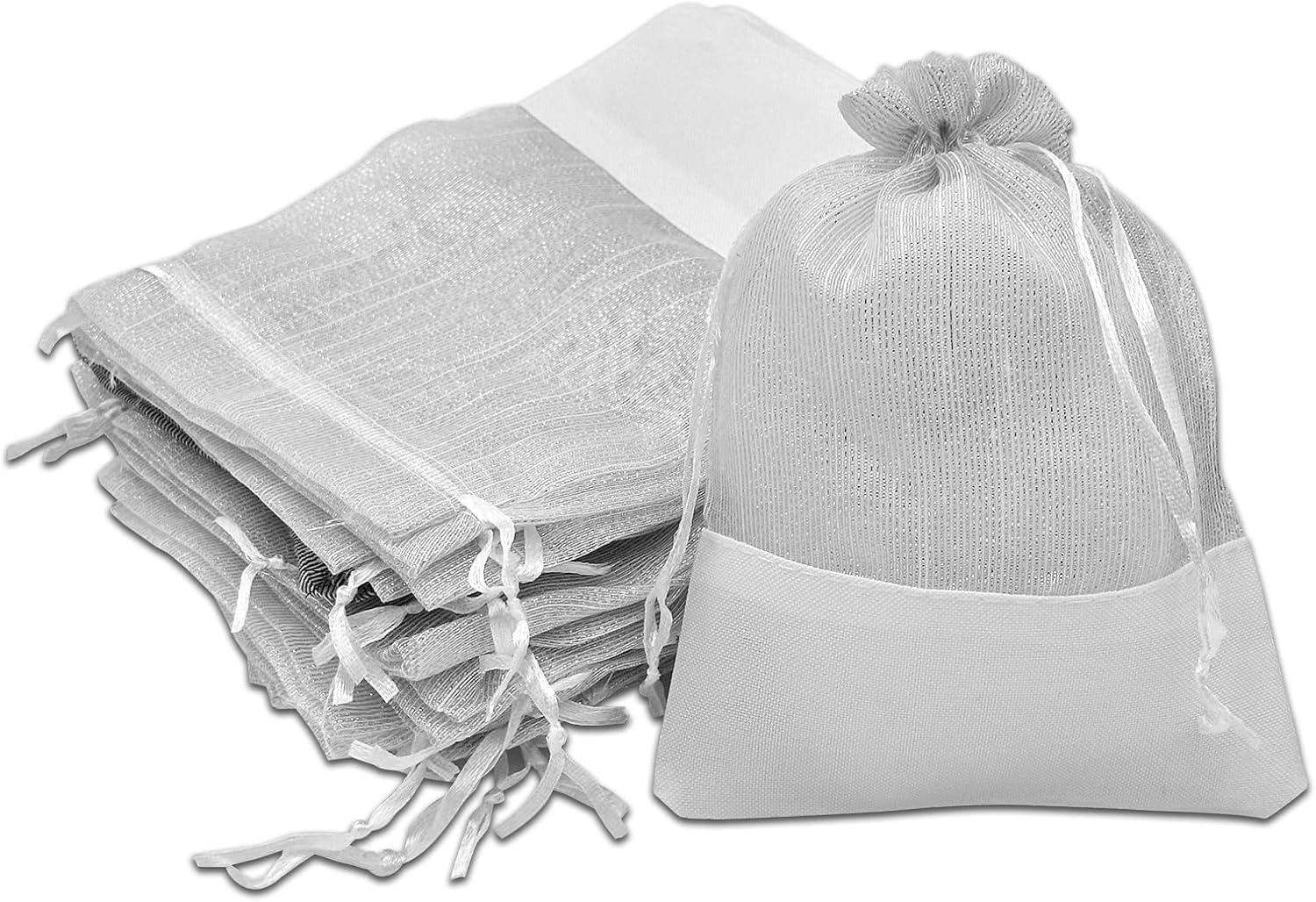 TheDisplayGuys For Your Modern Living 24-Pack Linen & White Organza Gift Bags with Drawstrings (Medium 5 x 7 1/4) - Party Favors, Samples, Treats Mesh Pouches