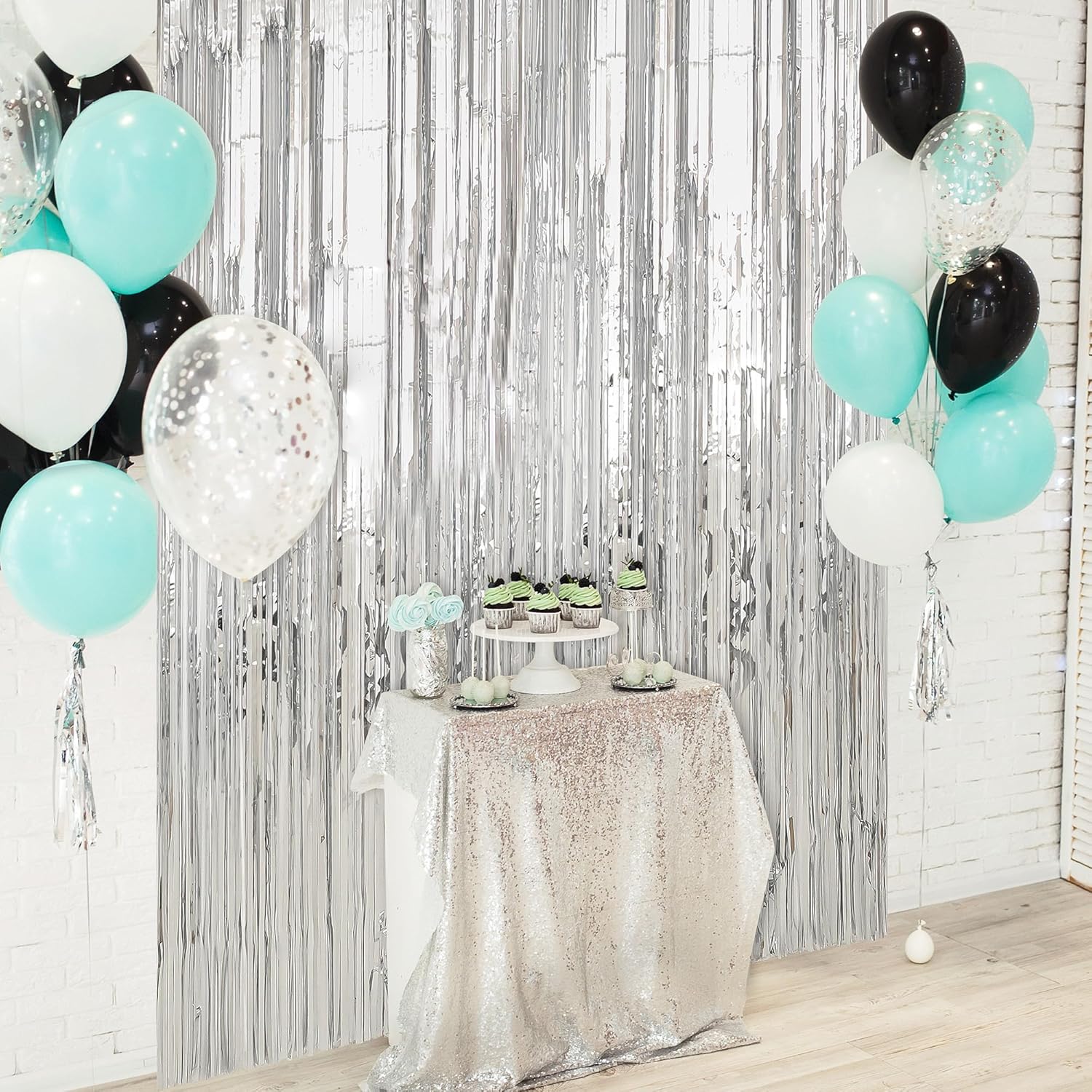 - Easy to Use - The foil curtain backdrop comes with double sided tape on the top, peel plastic strip off and it would be very easy to paste on smooth surfaces such as wall, window, table, door or anywhere you like. You can cut the foil curtain with scissors into the suitable Length, assemble the party streamers side by side to make the silver backdrop larger, or layer the backdrop curtains to get a thicker effect.