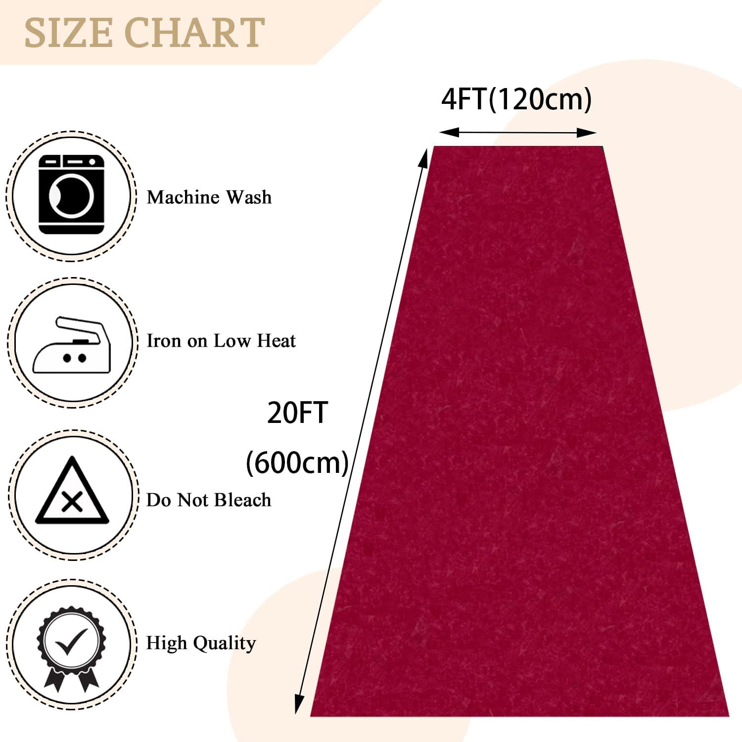 - ❤Size Guide - Aisle Runners for Weddings: You will receive 4ft wide by 20ft long burugndy velvet aisle runner rug and 1 pack carpet tapes. If you need a shorter or longer length burugndy carpet, you can be easily cut or spliced to your desired length with scissors and carpet tapes. Wedding aisle runway for ceremony add a perfect finishing touch to your ceremony venue, becoming a memorable keepsake to be cherish.