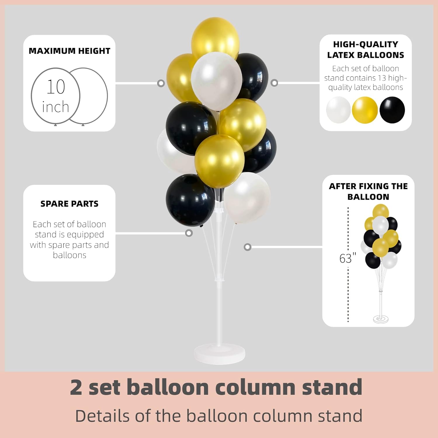- QUICK, EASY ASSEMBLY - Follow the detailed instruction guide provided with every kit, and easily add a big, beautiful balloon backdrop to your next party or event!The balloon column kit includes two water-weighted base stands to ensure your balloon tower will remain sturdy and beautiful throughout your event!