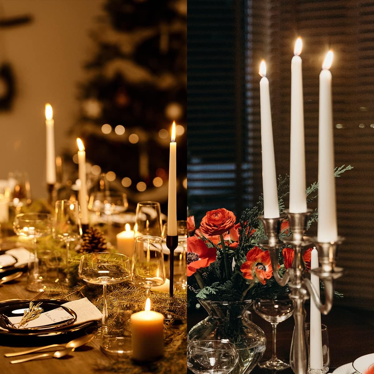 - A CLASSY ROMANTIC TOUCH: Spice up the romance with a candlelit dinner with your loved one. With a universal fit, they fit most candlesticks and candelabras - perfect for indoor and outdoor use. White unscented candles to avoid overpowering the moment
