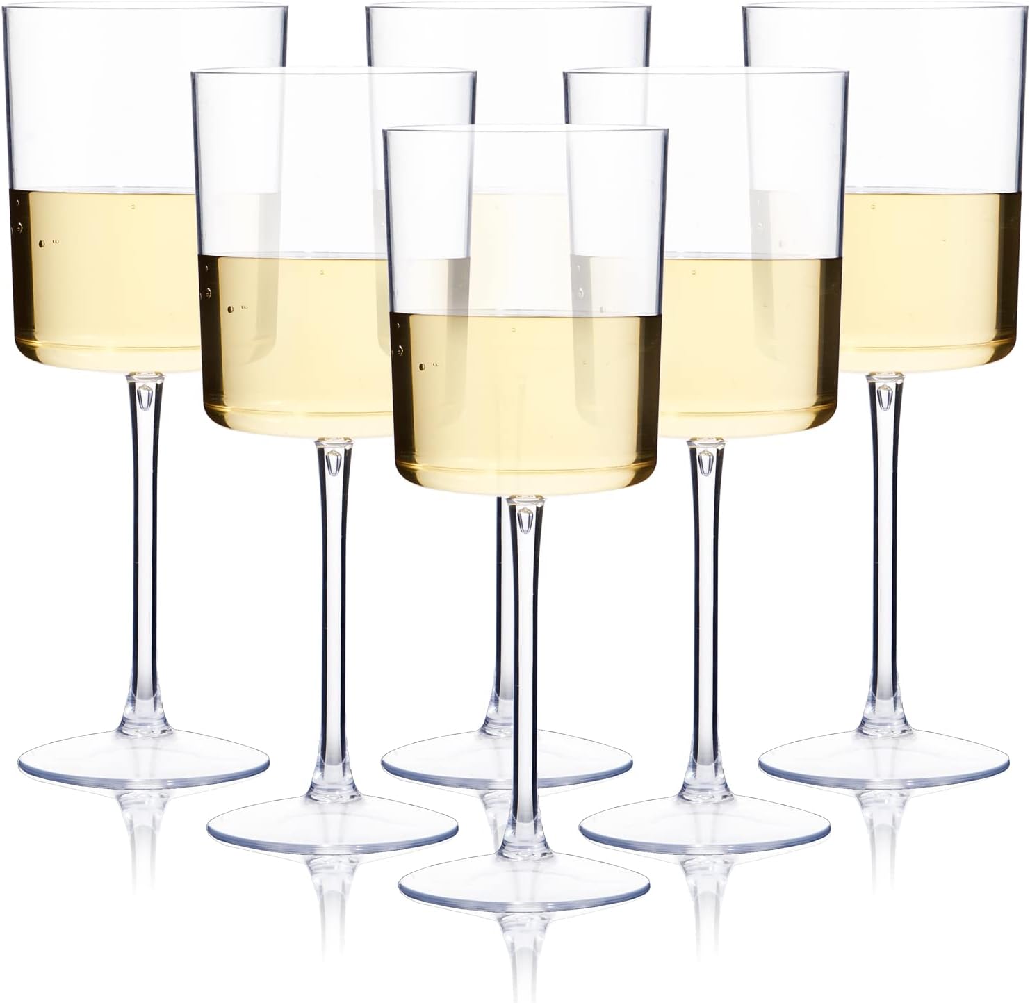 Ciaell 6 Pack Plastic Wine Glasses - 10 Oz Plastic Disposable Wine Glasses with Stem Perfect for Parties & Weddings & Poolside & Outdoors & Camping